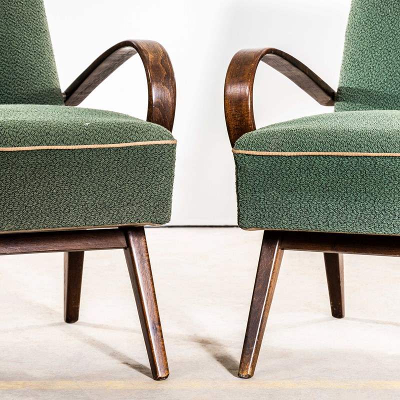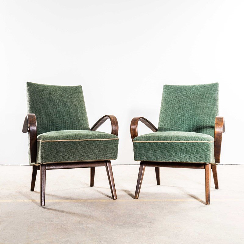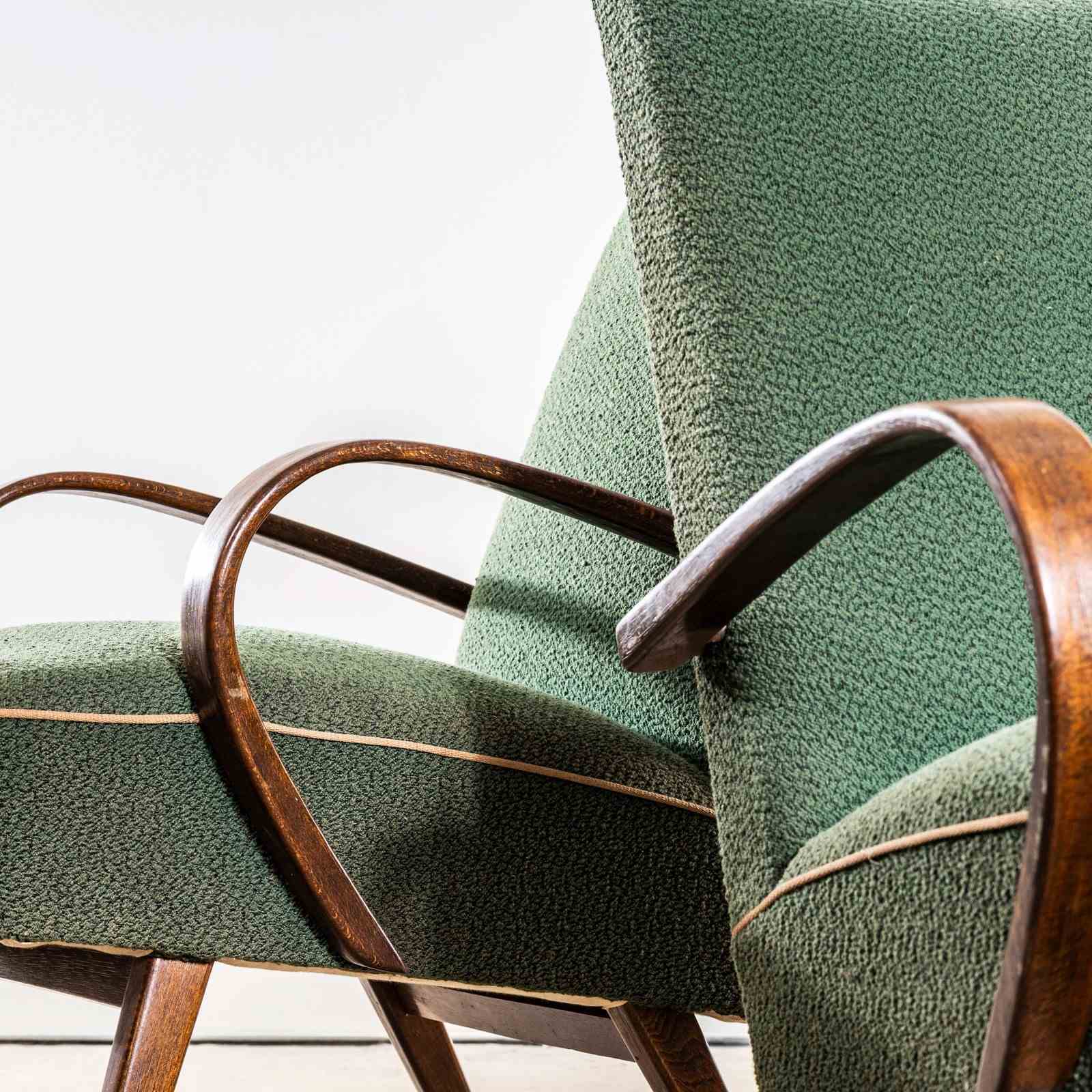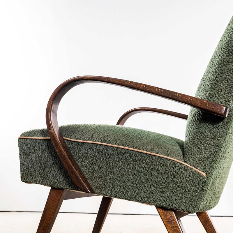 1950’S Jaroslav Šmídek Original Armchairs In A Forest Jacquard – Sprung Seat