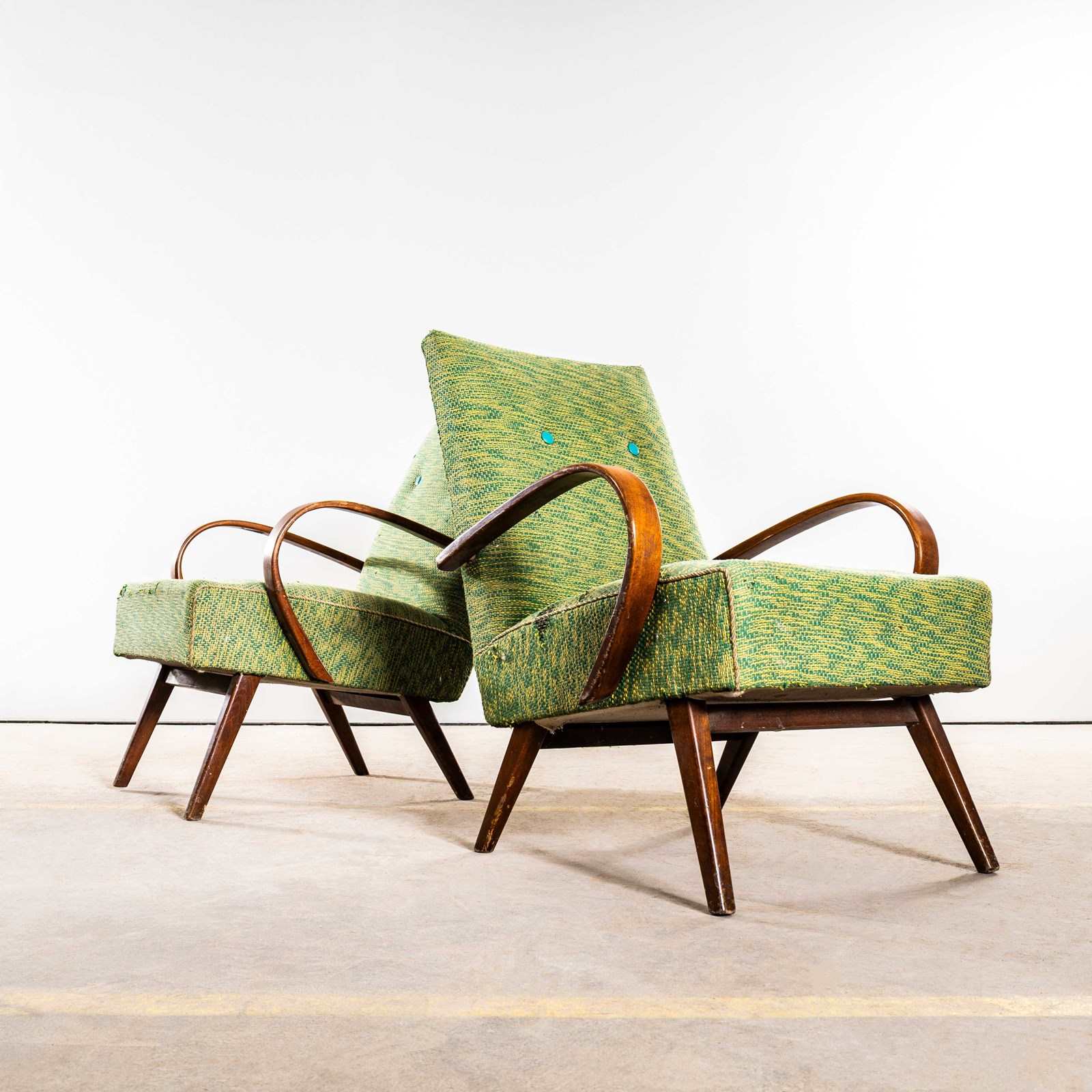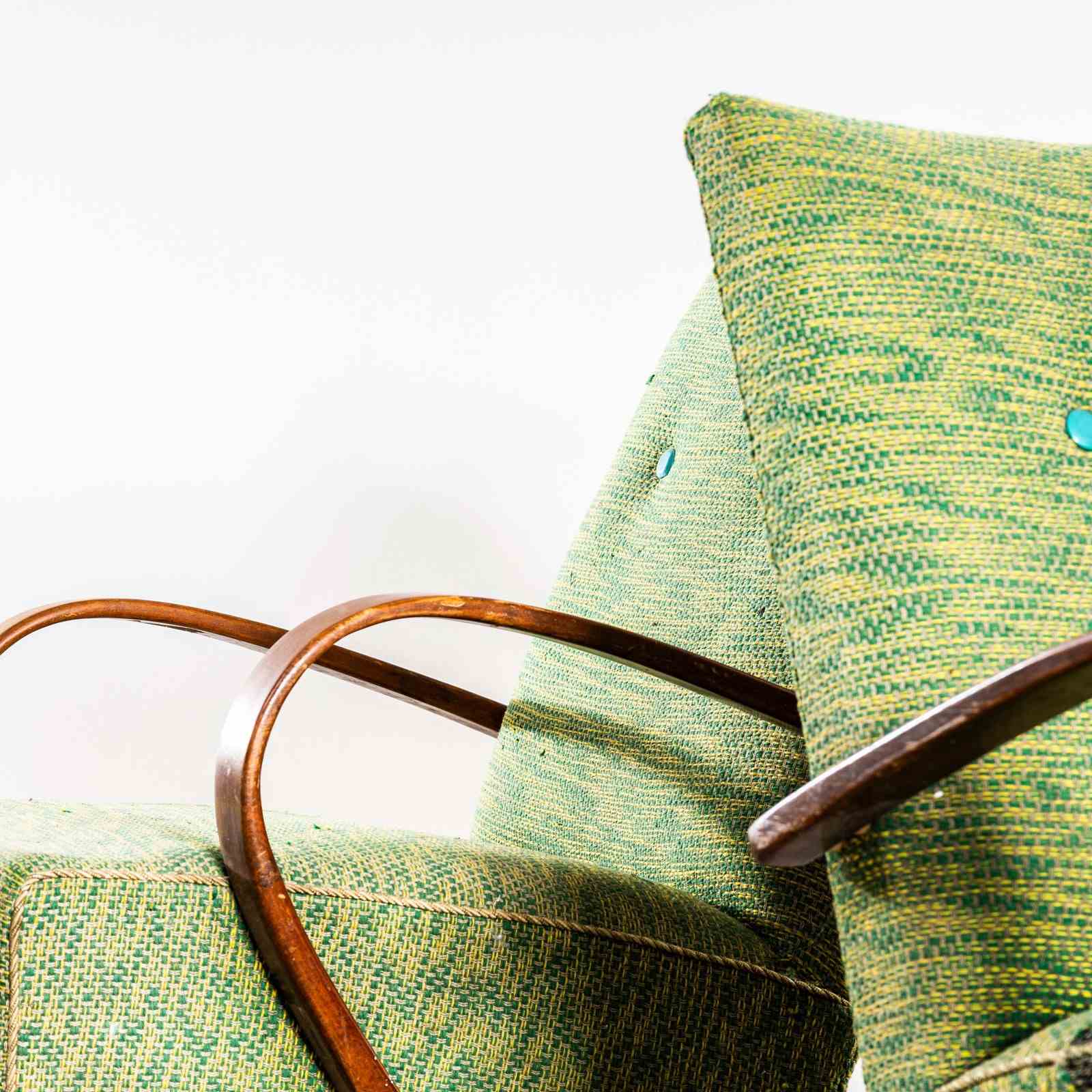 1950’S Jaroslav Šmídek Original Armchairs In A Lime Heavy Geometric Weave Fabric