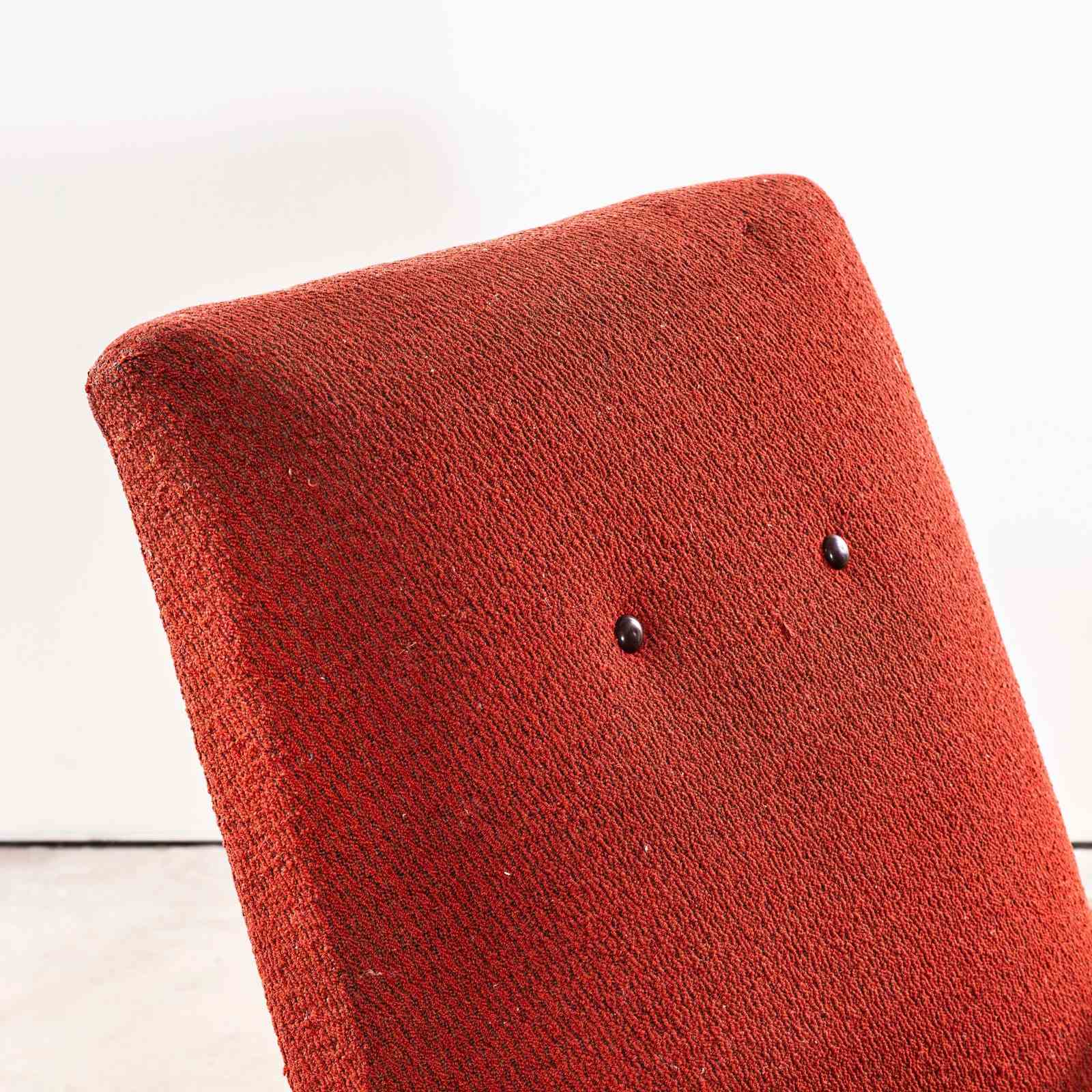 1950’s Jaroslav Šmídek Original Armchairs In A Tomato Boucle Geometric Check Fabric With Sprung Seat.