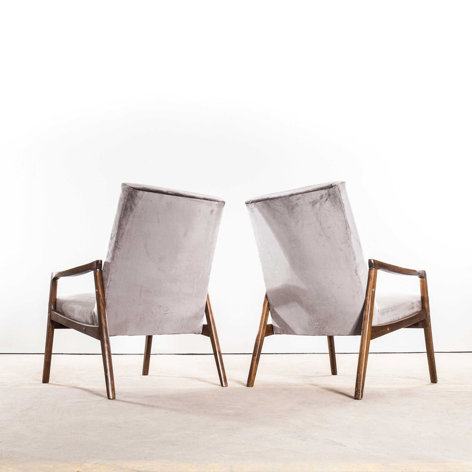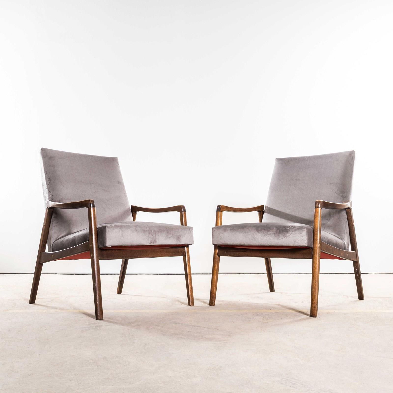 1950’S Jaroslav Šmídek Original Re-Upholstered Armchairs In Grey Cotton Velvet