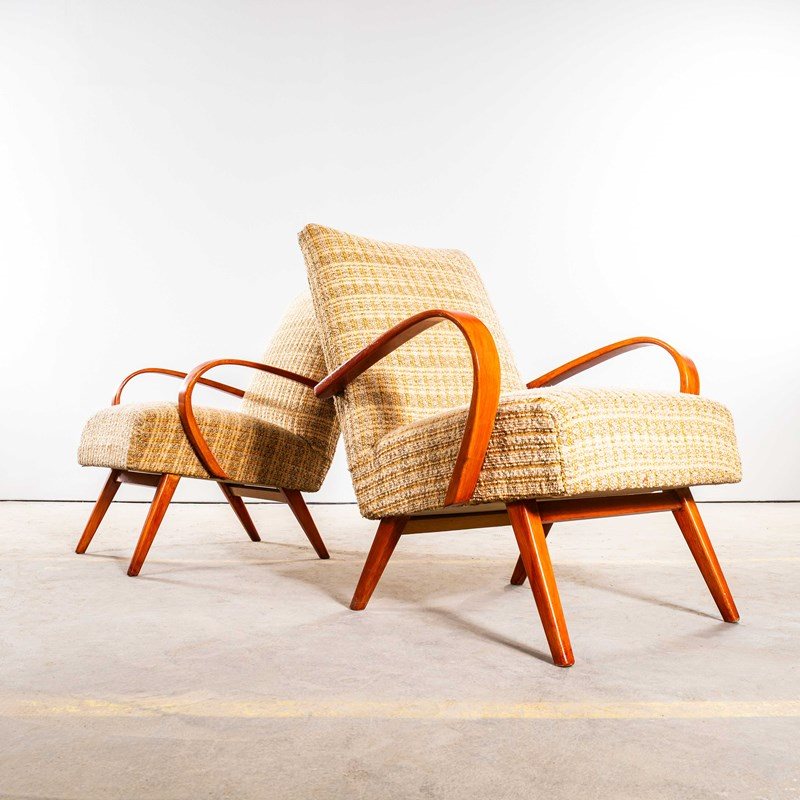 1950’S Jaroslav Šmídek Original Sprung Armchairs In A Geometric Check Fabric