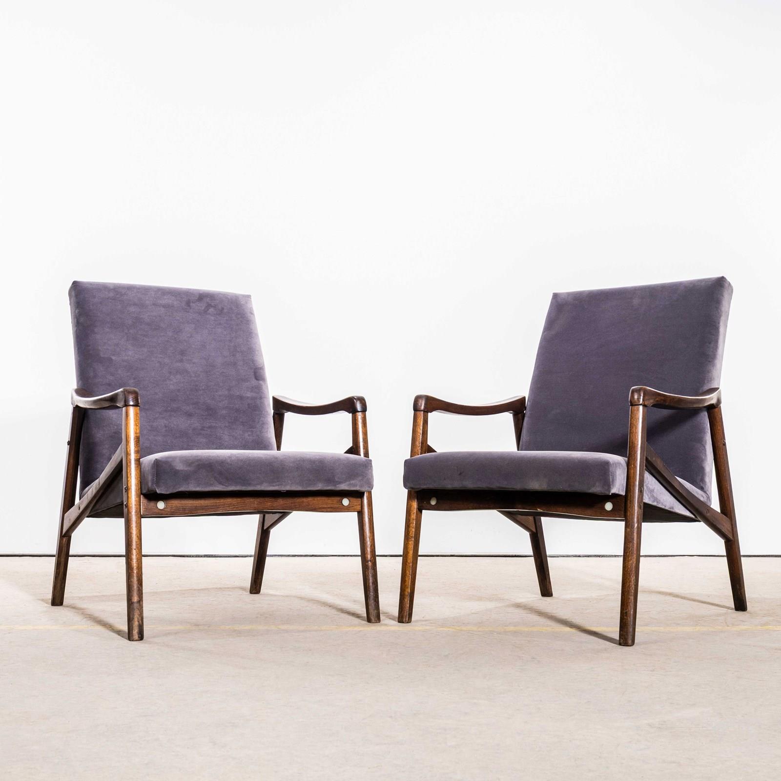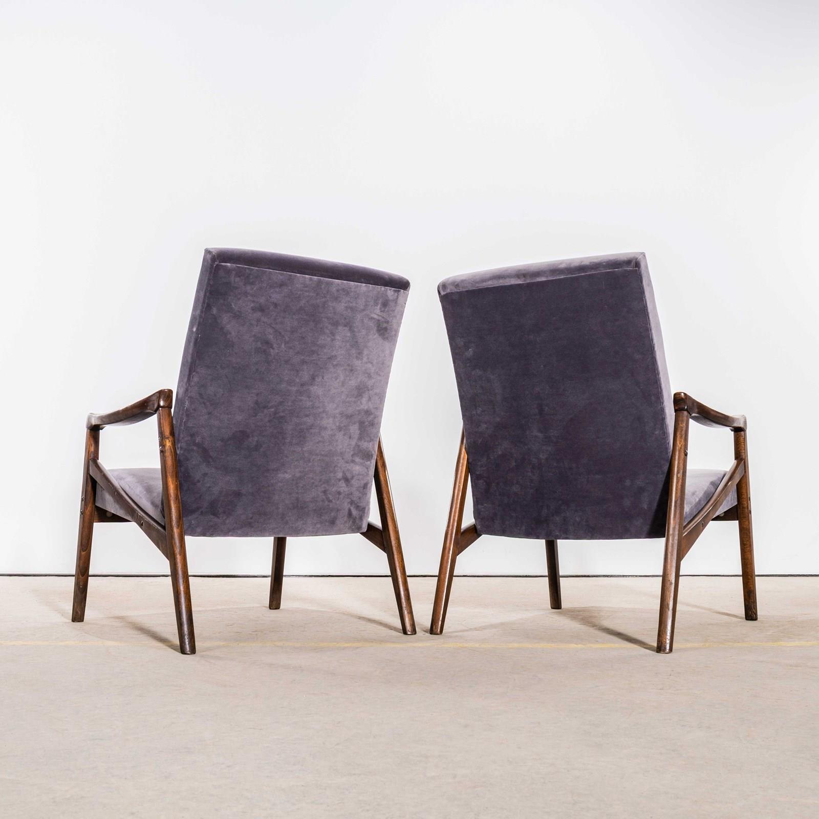 1950’s Jaroslav Smidek Original Re-Upholstered Armchairs In Grey Cotton Velvet.