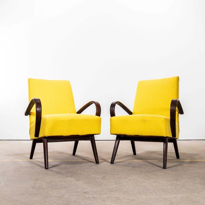1950’s Jaroslav Smidek Original Re-Upholstered Armchairs In Mustard.
