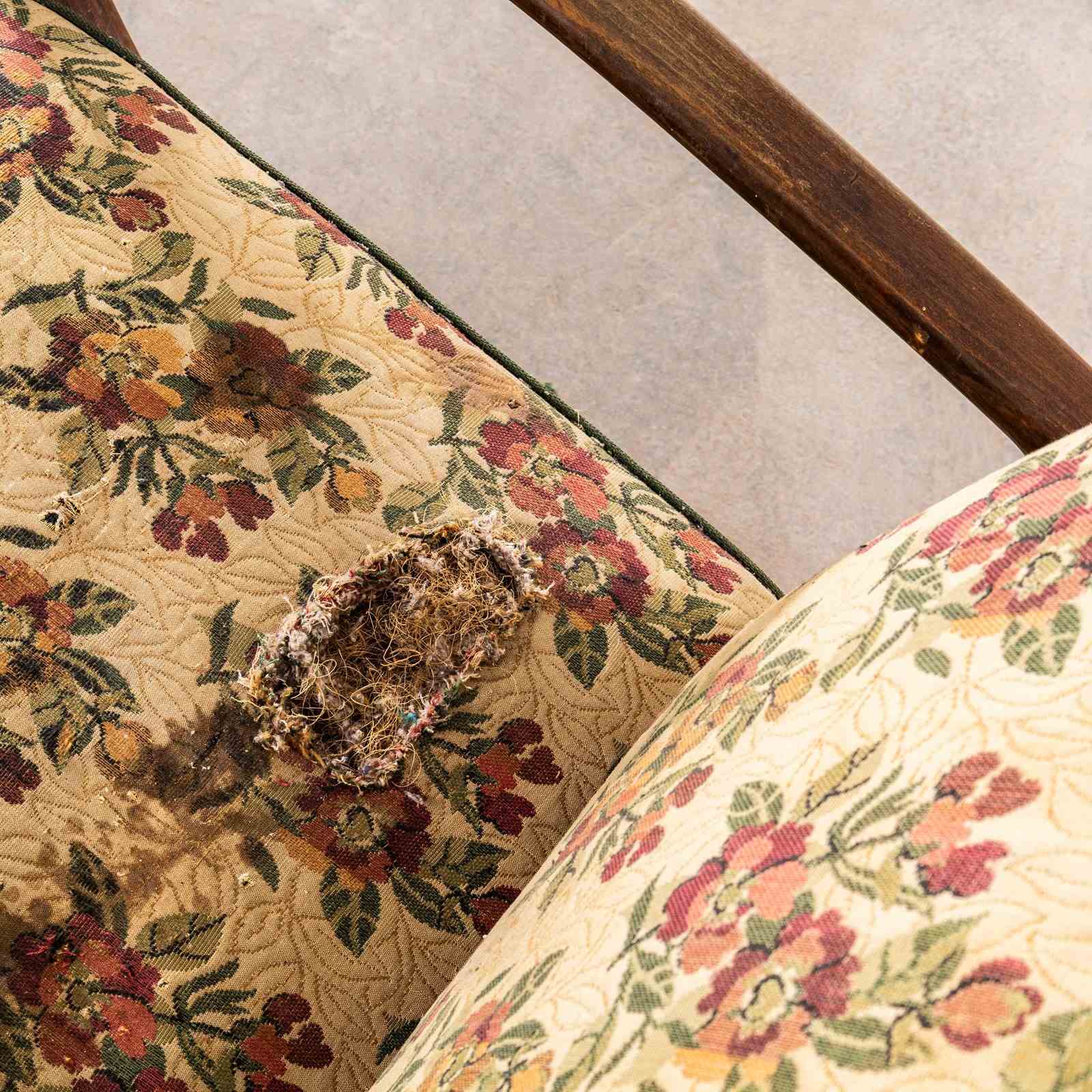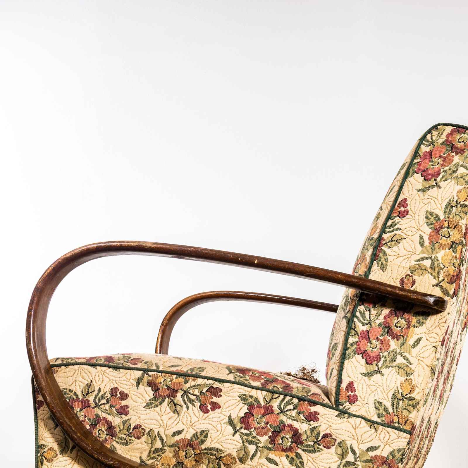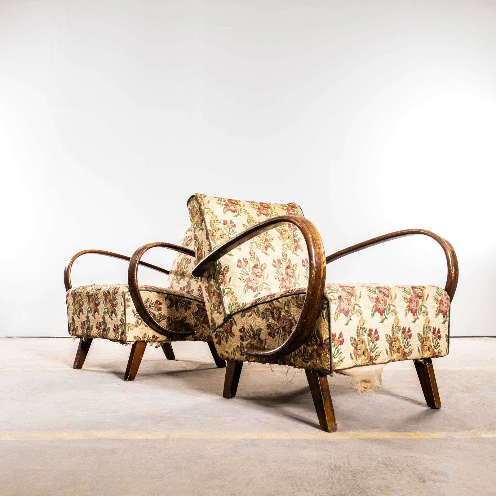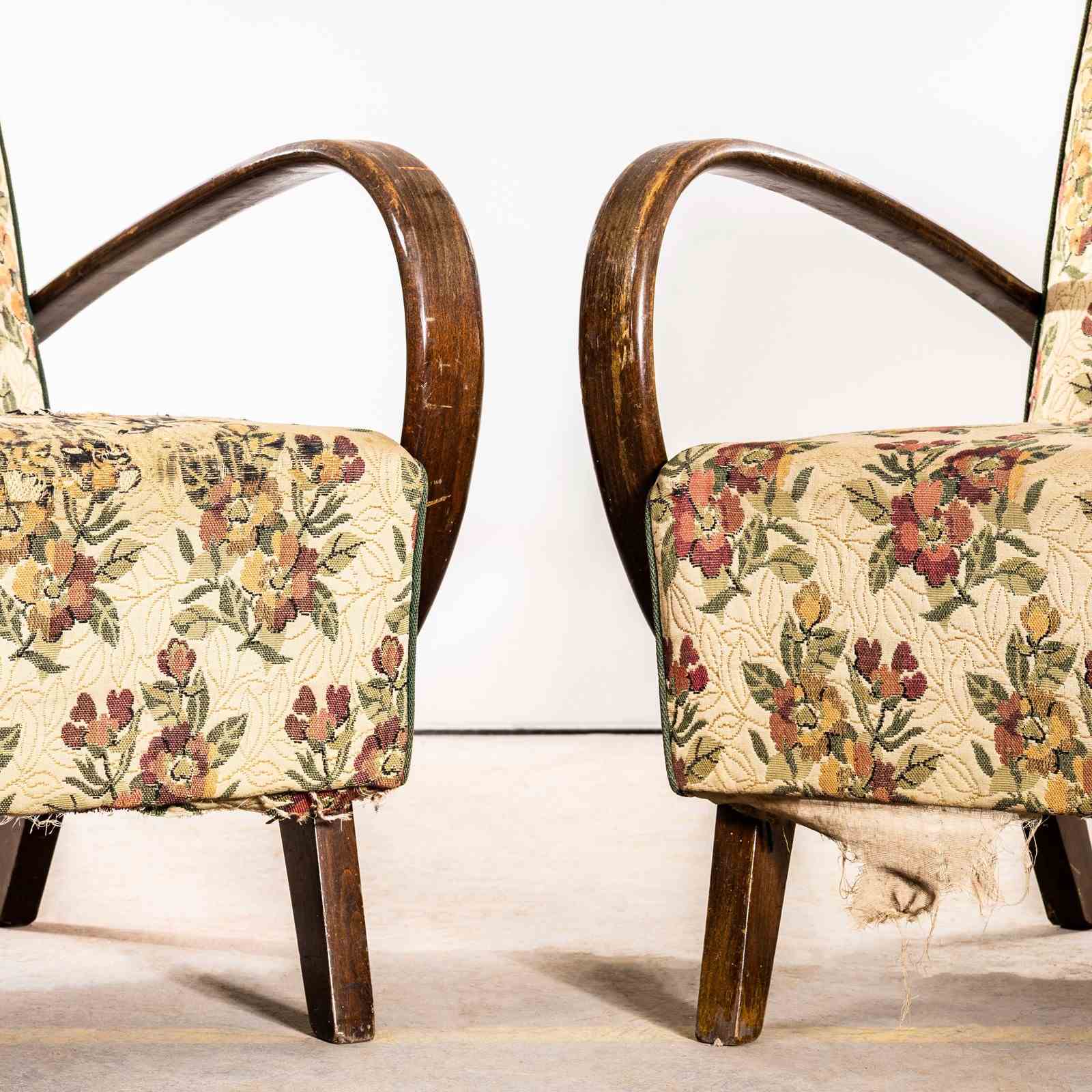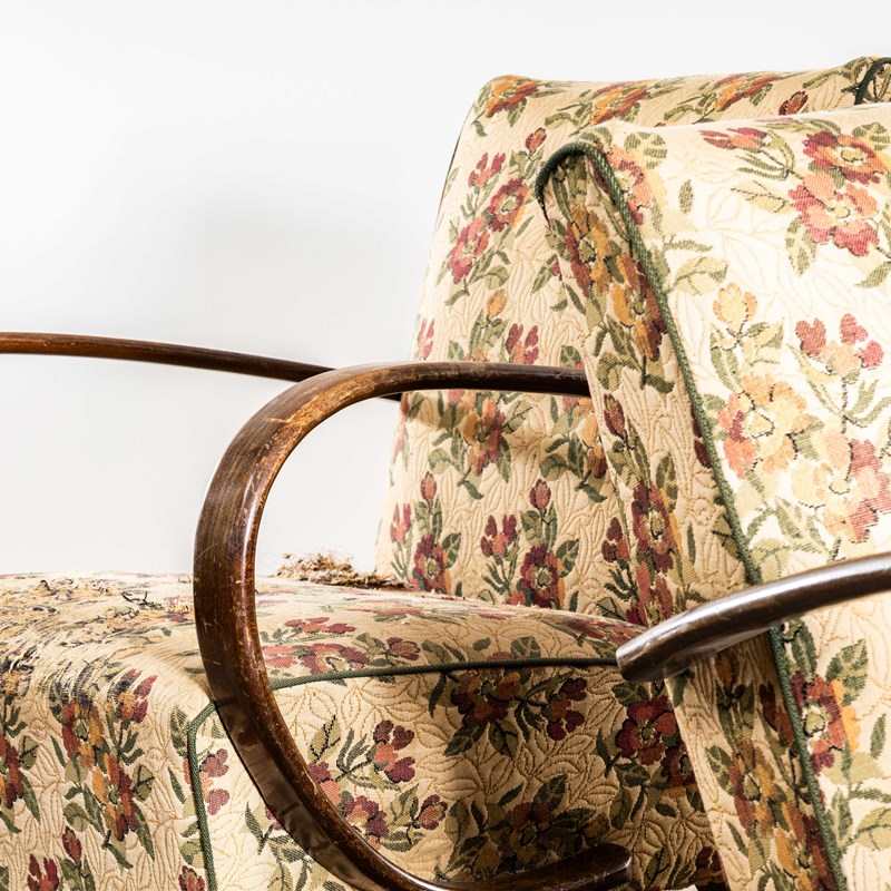 1950’S Jindrich Halabala Armchairs In Original Bold Floral Jacquard Fabric