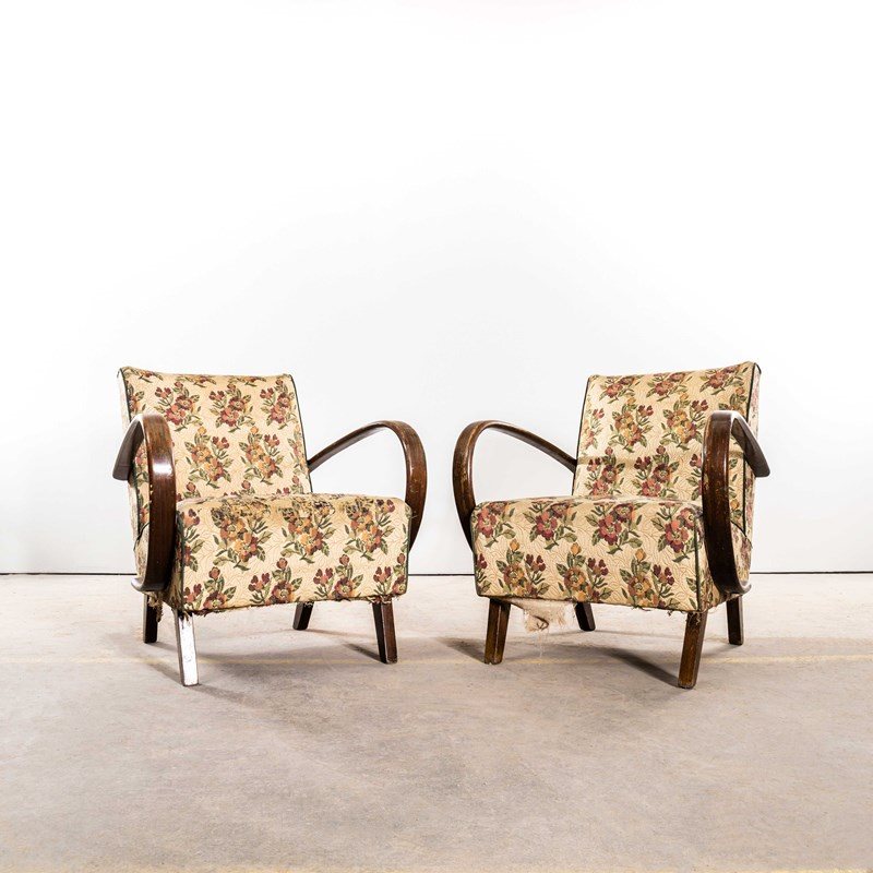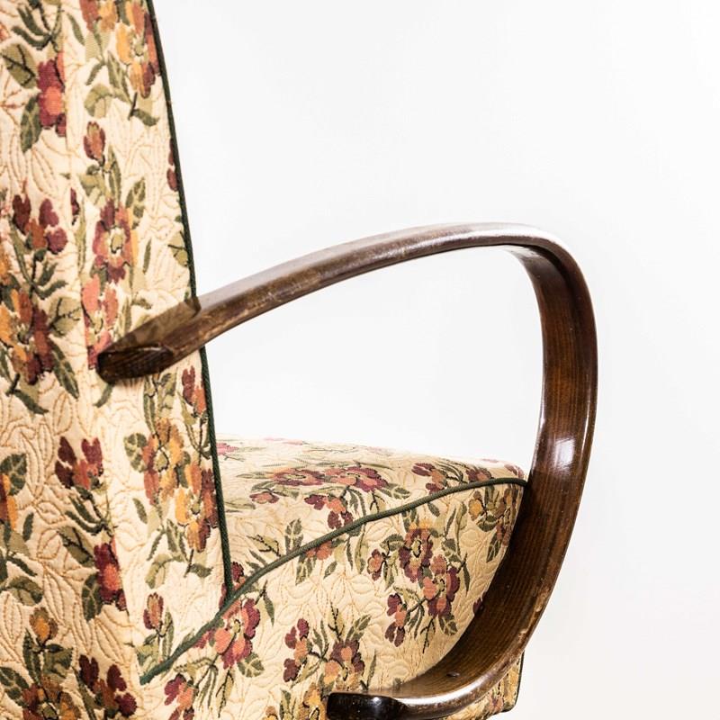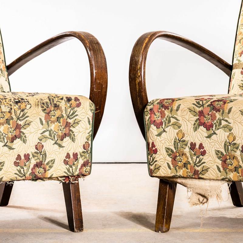 Sourced direct in the Czech republic, Halabala was a Czech industrial designer, writer, and educator. Halabala was a key force in the development of post war industrially produced European furniture. The chair frames are beech throughout and the extraordinary one piece bentwood beech arms have been cleaned and waxed but retain their original character. We carefully select very original armchairs ensuring the fabrics and upholstery are in as best condition as possible. The upholstery is completely original and has been deep steam cleaned by our workshop team. Seat Height 42cm.