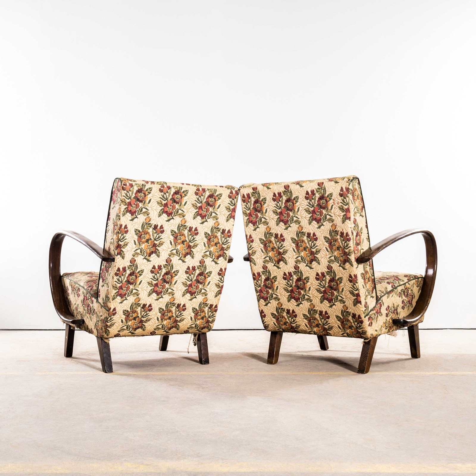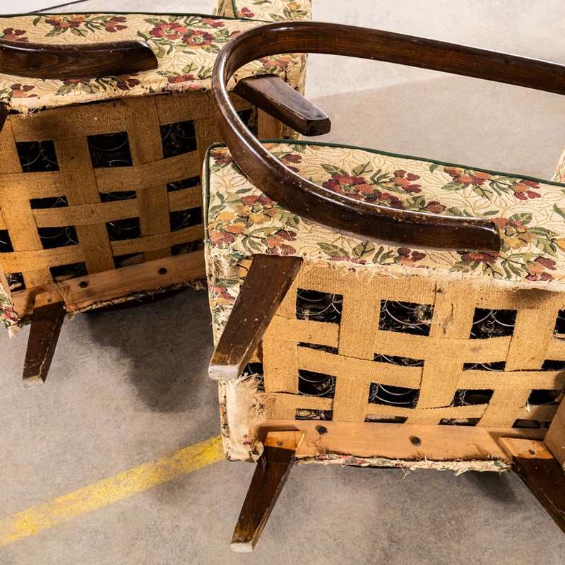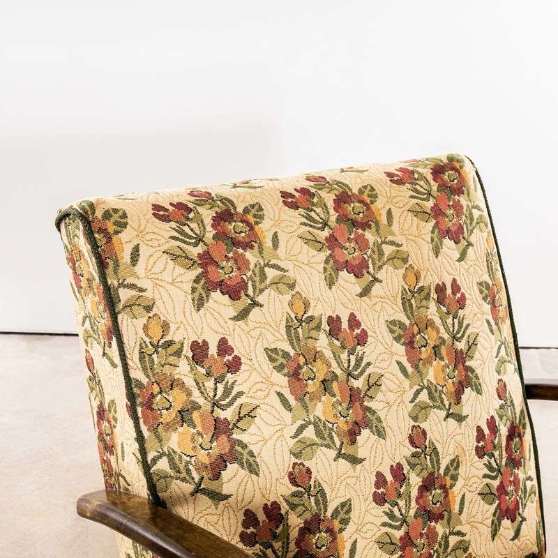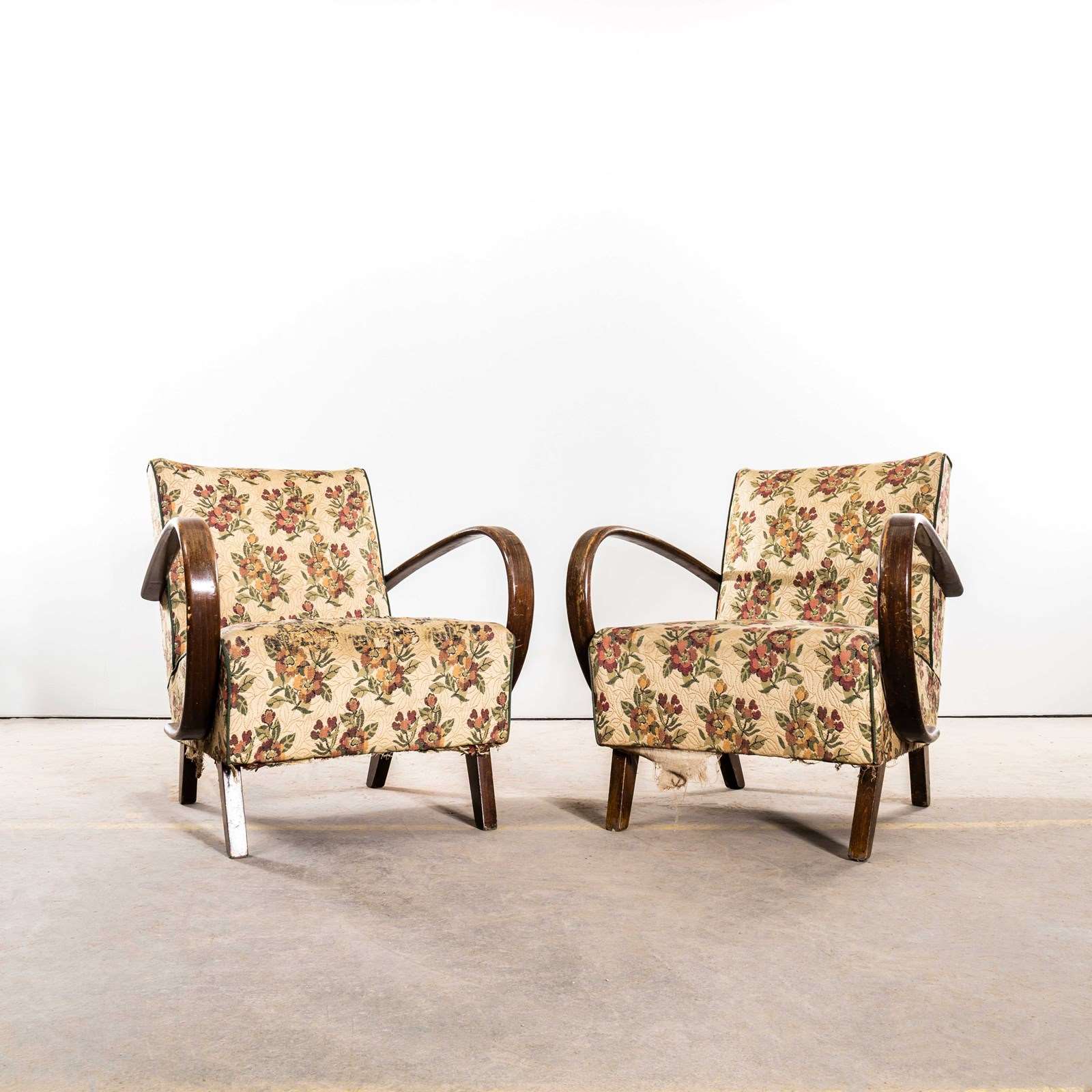 1950’s Jindrich Halabala Armchairs In Original Bold Floral Jacquard Fabric.