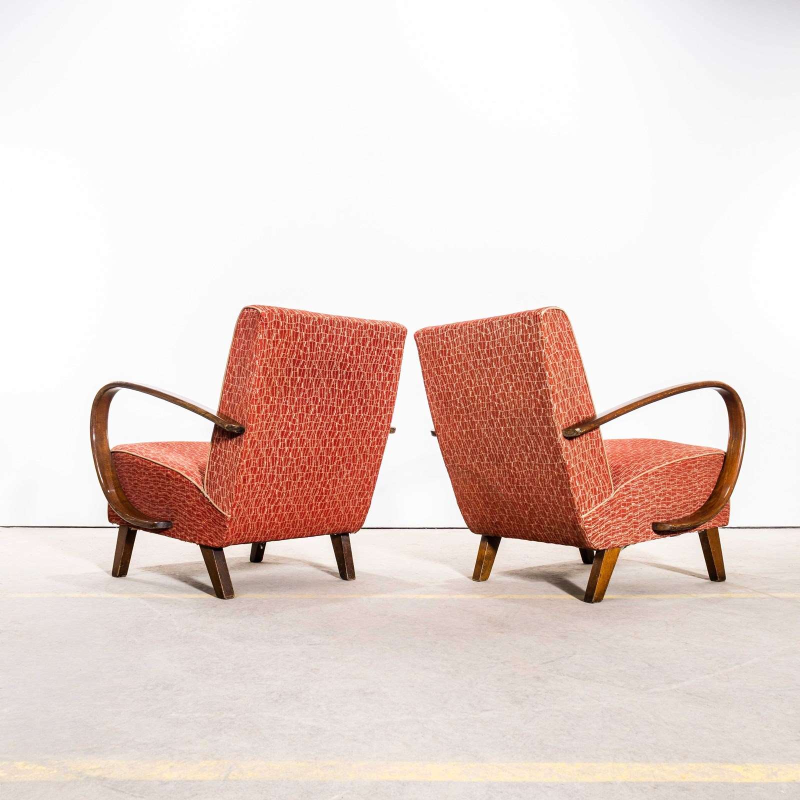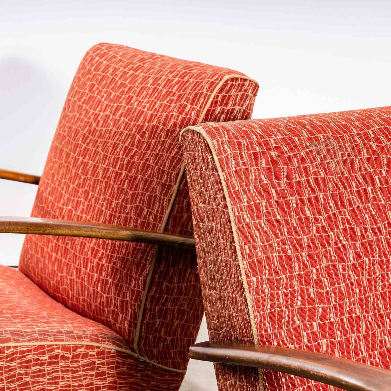 1950’S Jindrich Halabala Armchairs In Original Geometric Jacquard Fabric
