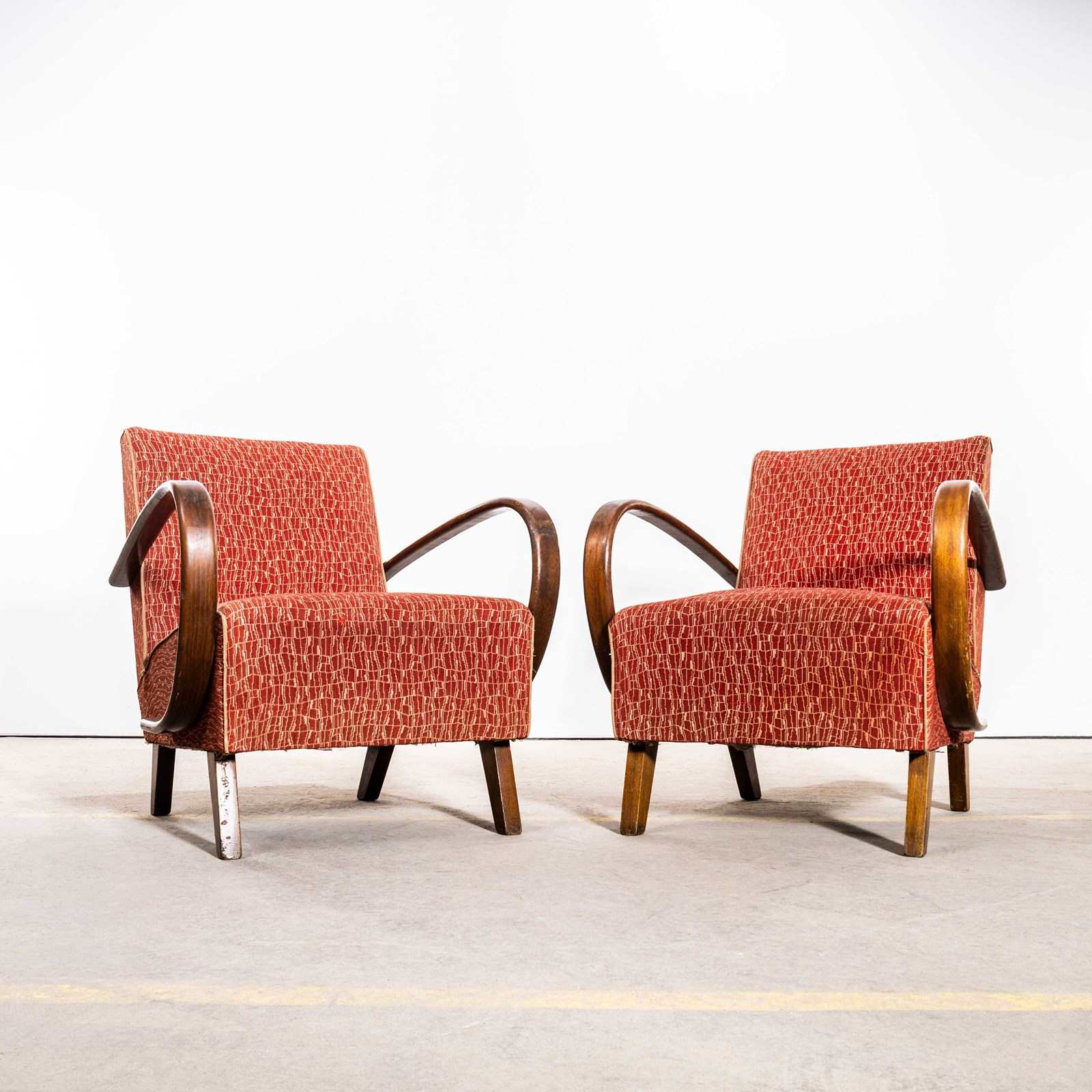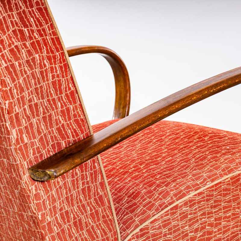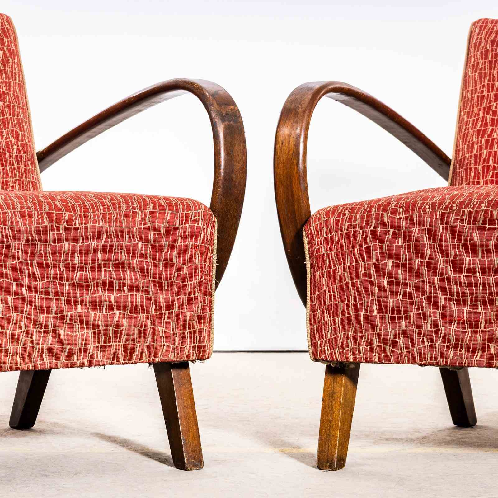 Sourced direct in the Czech republic, Halabala was a Czech industrial designer, writer, and educator. Halabala was a key force in the development of post war industrially produced European furniture. The chair frames are beech throughout and the extraordinary one piece bentwood beech arms have been cleaned and waxed but retain their original character. We carefully select very original armchairs ensuring the fabrics and upholstery are in as best condition as possible. The upholstery is completely original and has been deep steam cleaned by our workshop team.