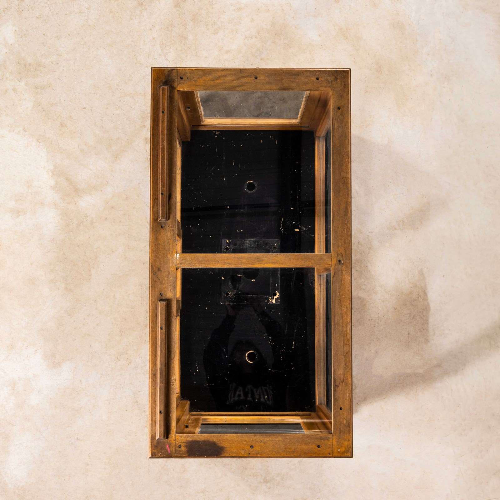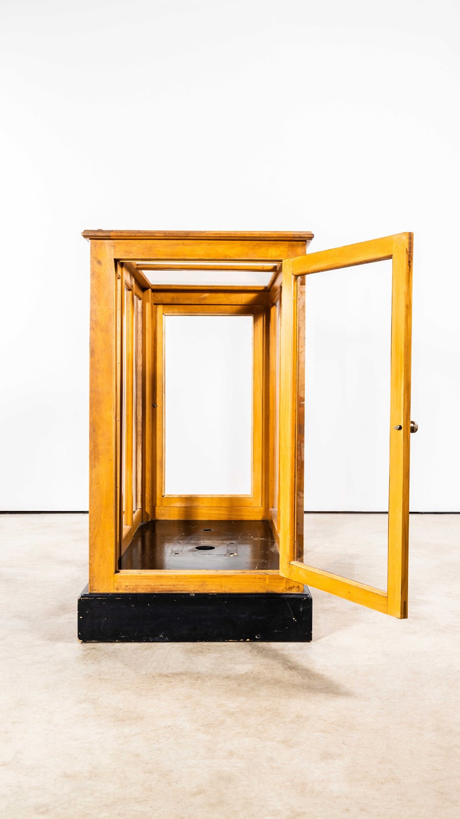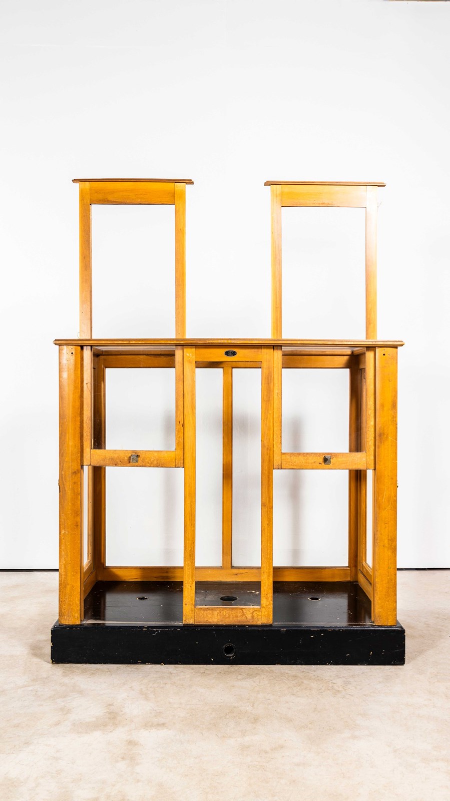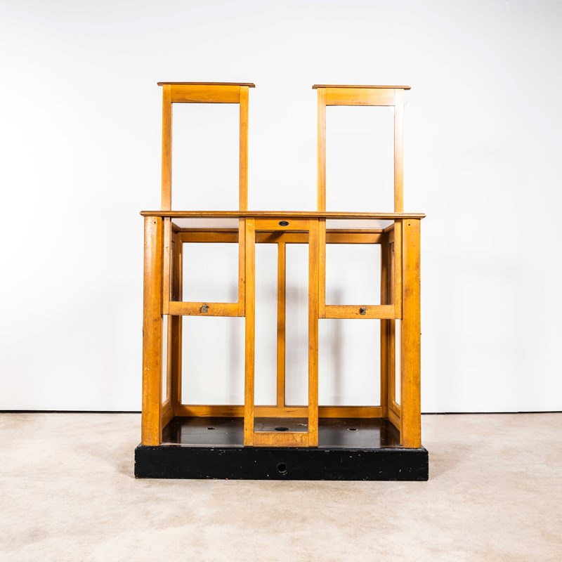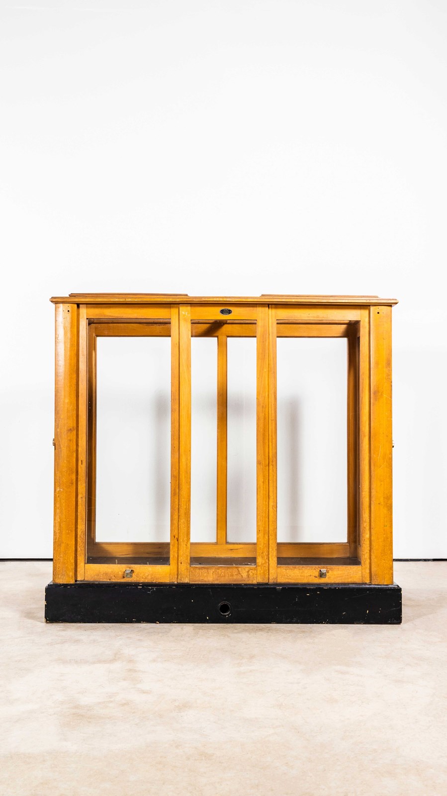 We salvaged a number of well made display cases previously used to house balance scales at the VEF factory in Latvia. The scales were used to check the accuracy of the master weights used throughout a factory. The VEF factory was an ex Soviet factory famous in the 30’s for making the worlds smallest spy camera and then in the 50’s it produced most of Soviet Russia’s radios and telephones. The display cases are great practical pieces for displaying larger items. Our workshop has cleaned and serviced the cabinet and the two counterweighted doors open well. The listing is for one case as shown.
