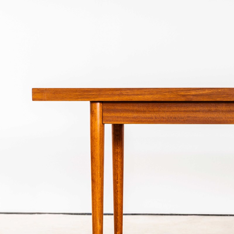 Beautiful simple and classic mid century low table sourced in the Czech Republic. The table is beautifully made with mid tone honey oak and sapele legs. Czech was a large producer of high quality mid century furniture following the surge of modernism originated by the Bauhaus school. An elegant mid century piece of furniture. The table retains the original finish and is a strong and practical piece. We sell high quality vintage and our workshop has gently restored this piece to bring out its original colour.