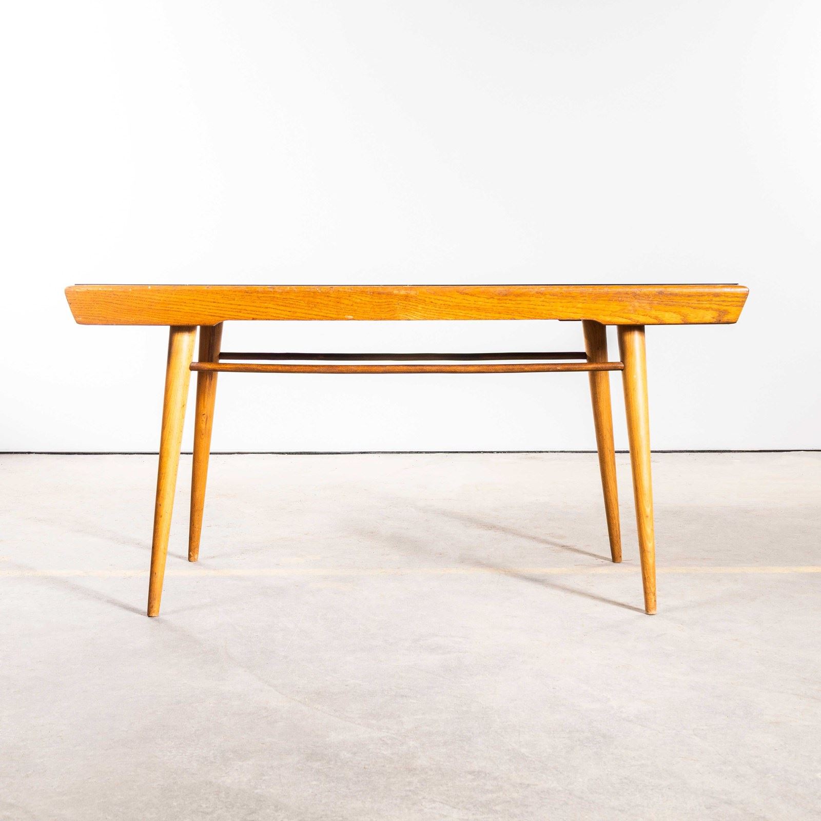 Good quality side table with a practical laminate top and a light golden colour. The table was made in Eastern Europe using birch and beech. Our workshop has cleaned and serviced the table it is strong, stable and good to go.