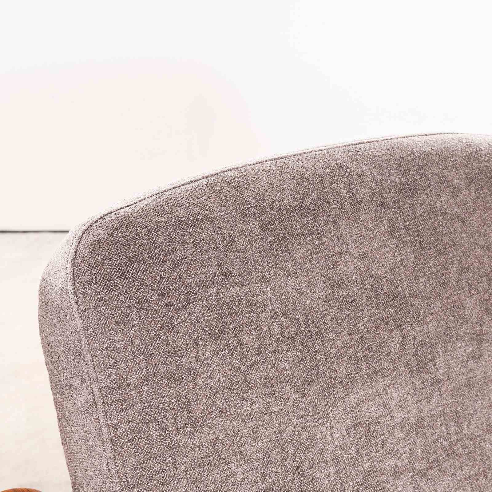 1950’s Mid Century Upholstered Grey Brushed Cotton Armchairs With Straight Arms and Top Caps.