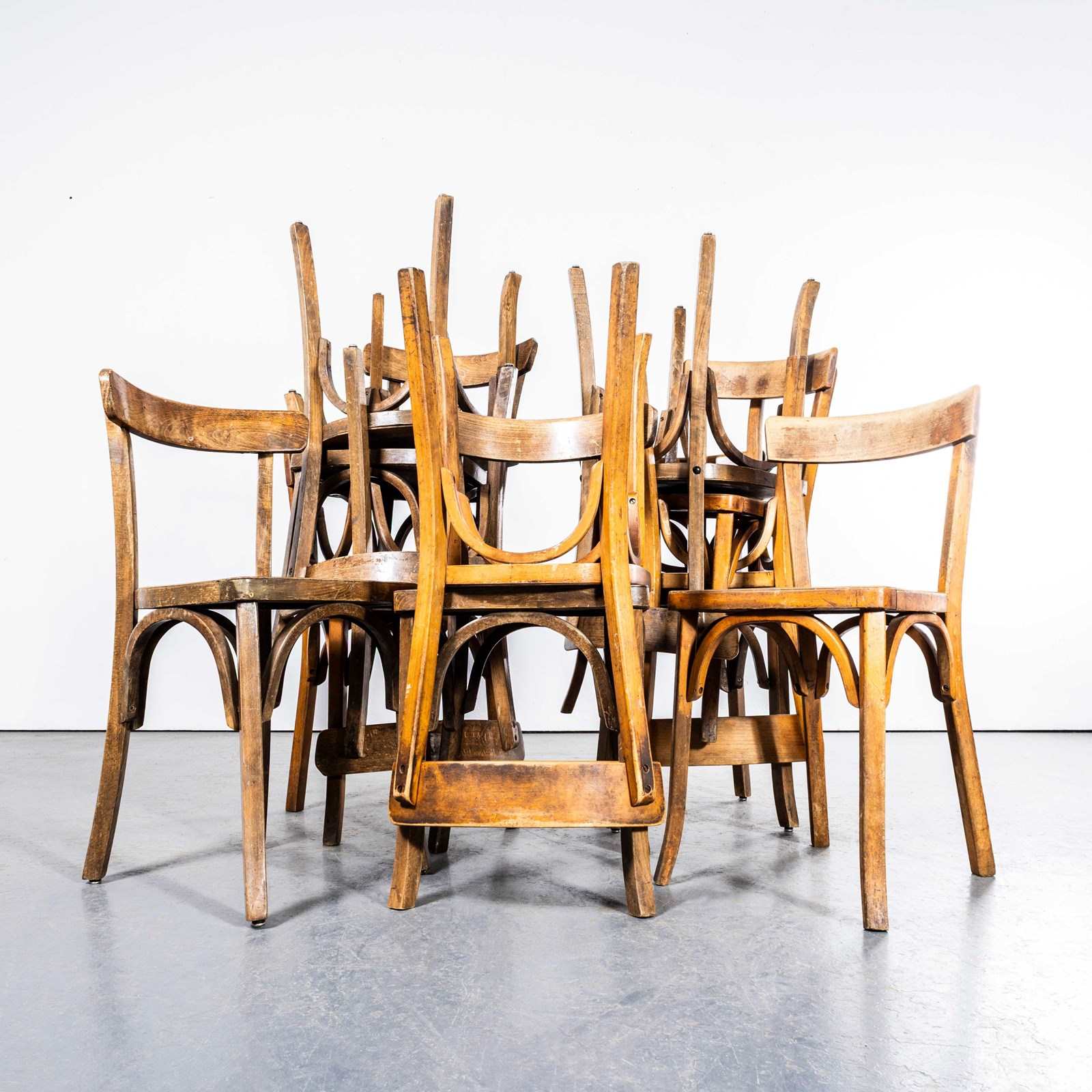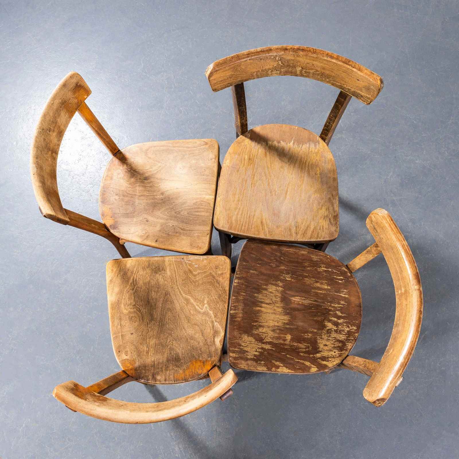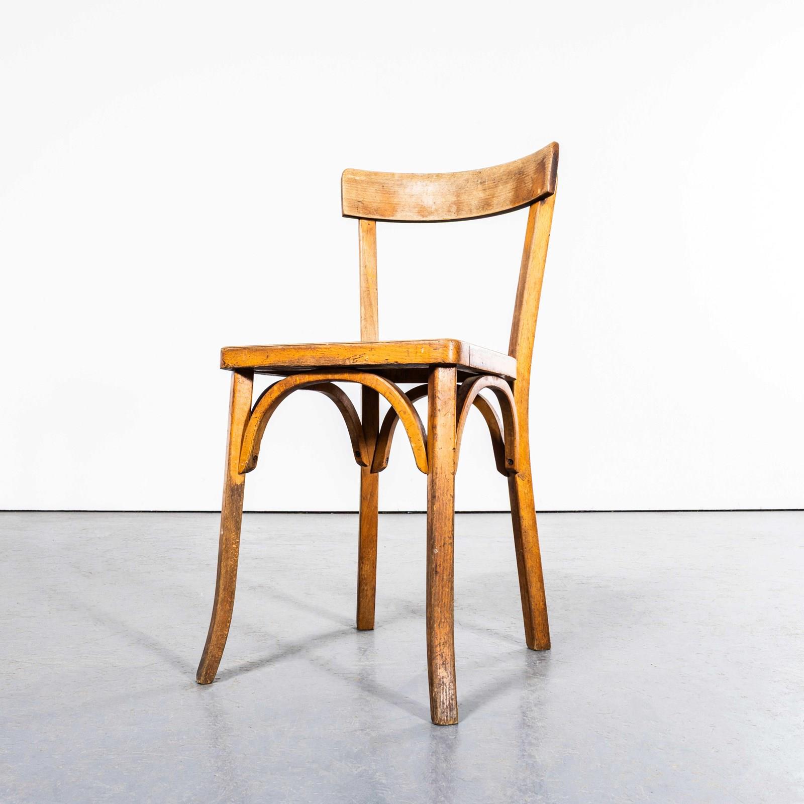 Good honest batch of classic French single bar chairs used throughout France in Cafes and restaurants. The batch is a mix of Baumann & Fischel chairs, both classic French producers who produced this design. All chairs pass through our workshop where they are serviced, cleaned and waxed ready for a second life.