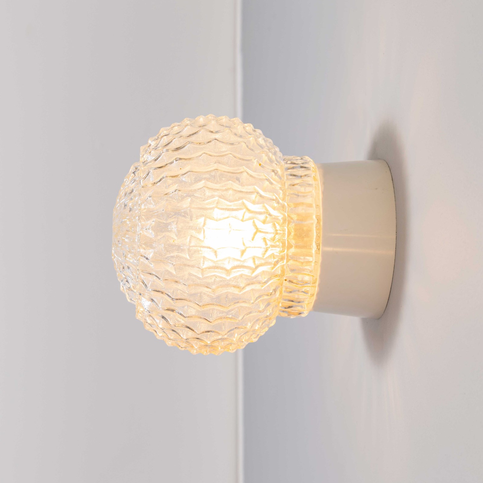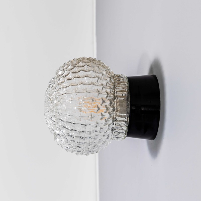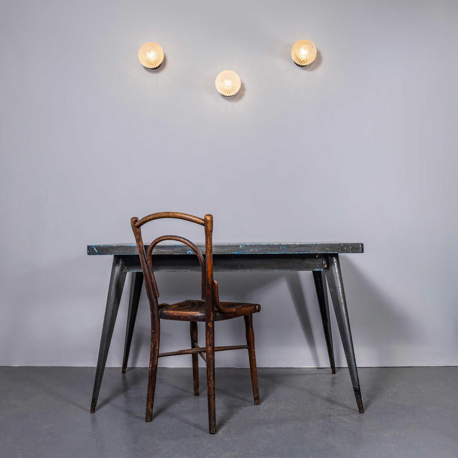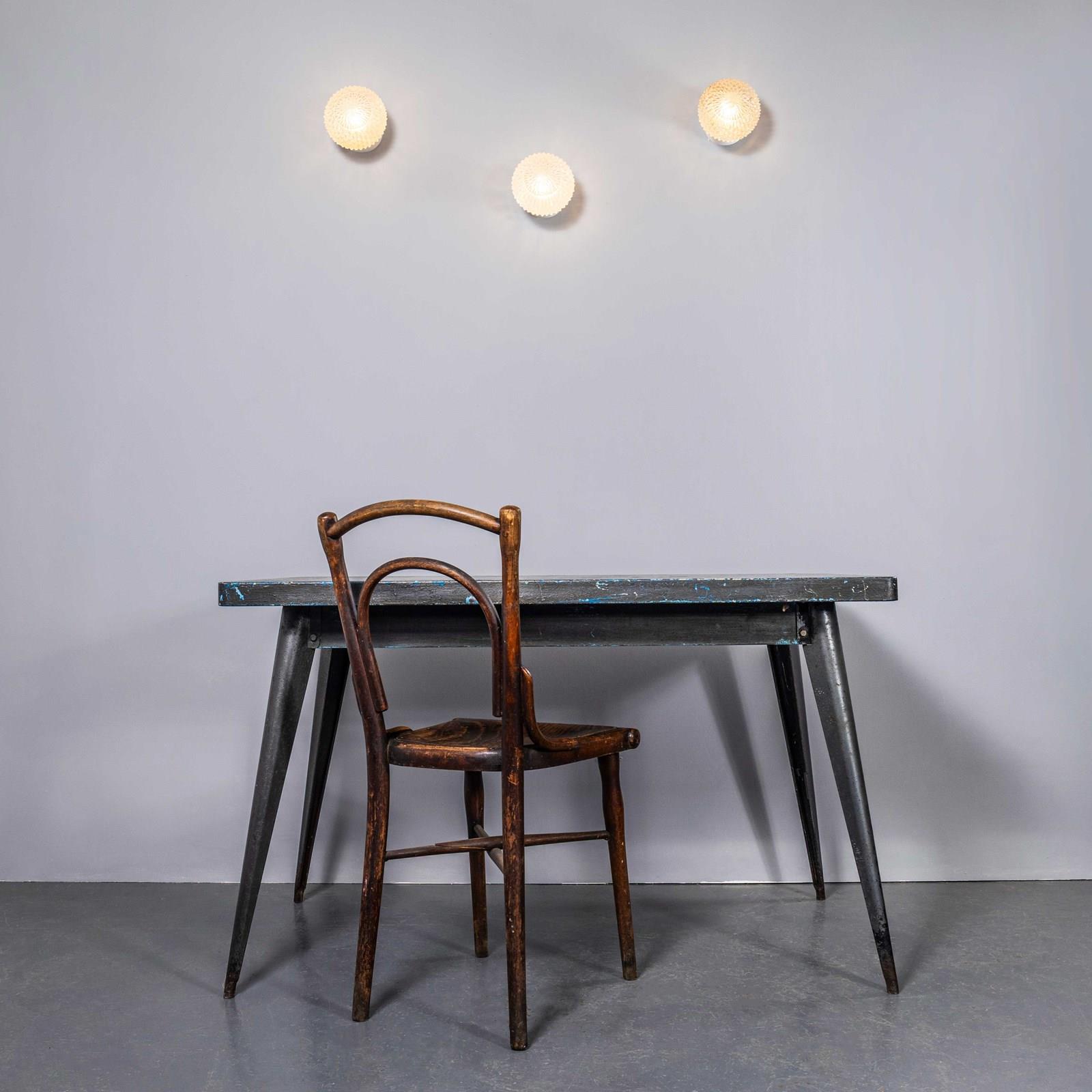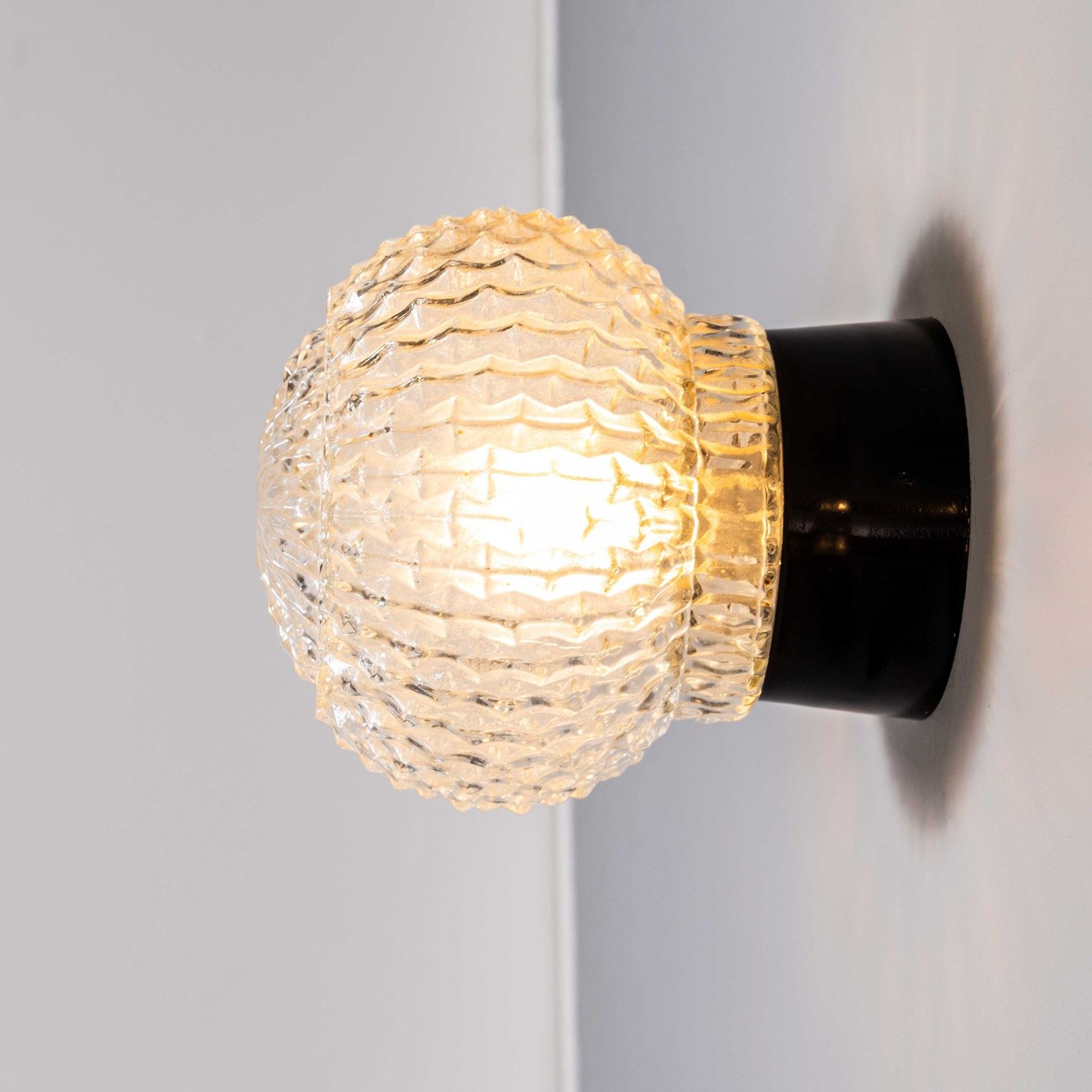 The wall mount tops are a type of original Bakelite (self insulated) and simply screw into the glass globe. Each lamp has been cleaned and restored. Given the unique nature of the Bakelite wall mounts the original female bulb inserts are retained. The lamp is pre wired and PAT tested ready for connection. The lamp is fitted with a standard E27 threaded lamp holder for which a wide range of modern and vintage style filament bulbs are widely available. We do not currently sell bulbs and recommend LED bulbs 6W maximum. We are specialists in refurbishment of vintage lighting, please contact us with any questions regarding purchase or installation. The lamp is currently wired and fitted for UK and EU compliance. The lamp can be wired for compliance in the US or any global market. Listing is for one lamp.