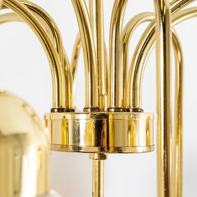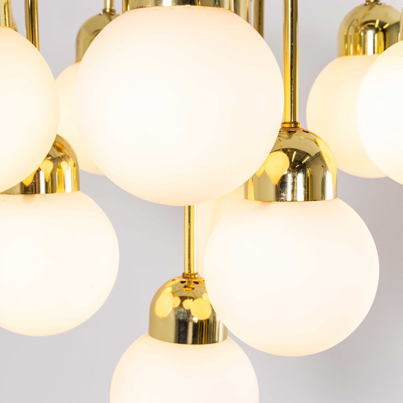 1950’s Original Brass And Opal Globe Pendant Chandelier.