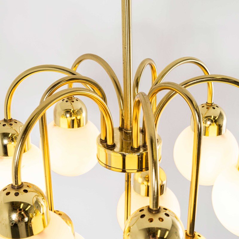 1950'S Original Brass And Opal Globe Pendant Chandelier