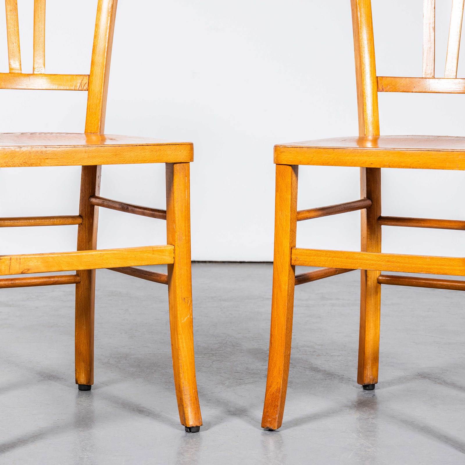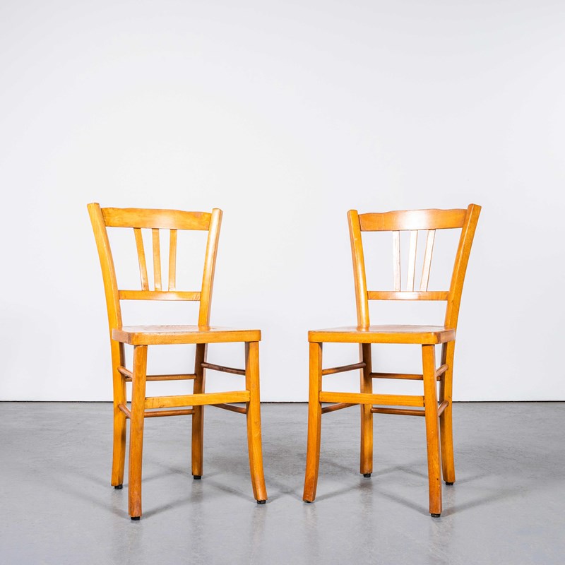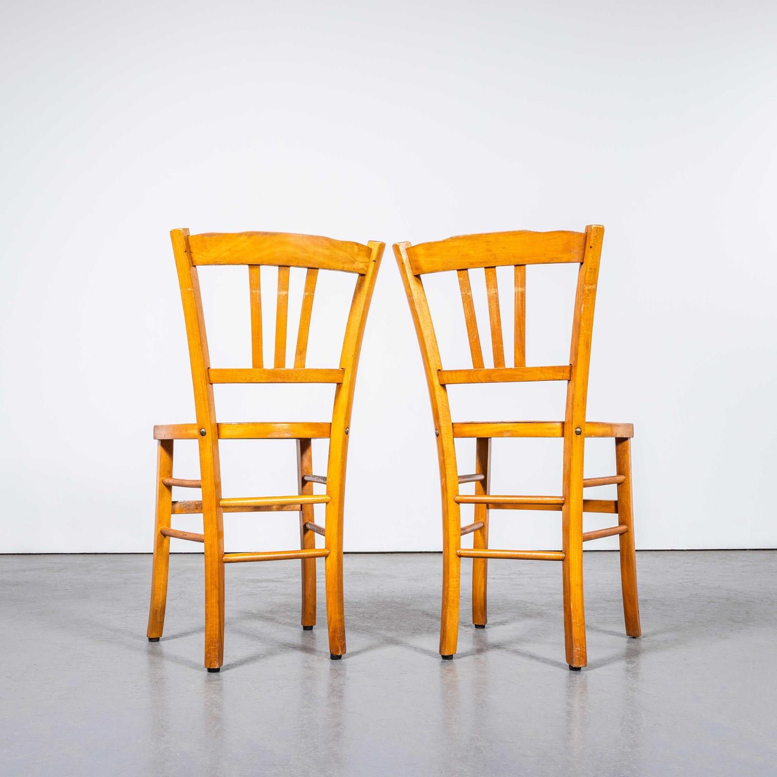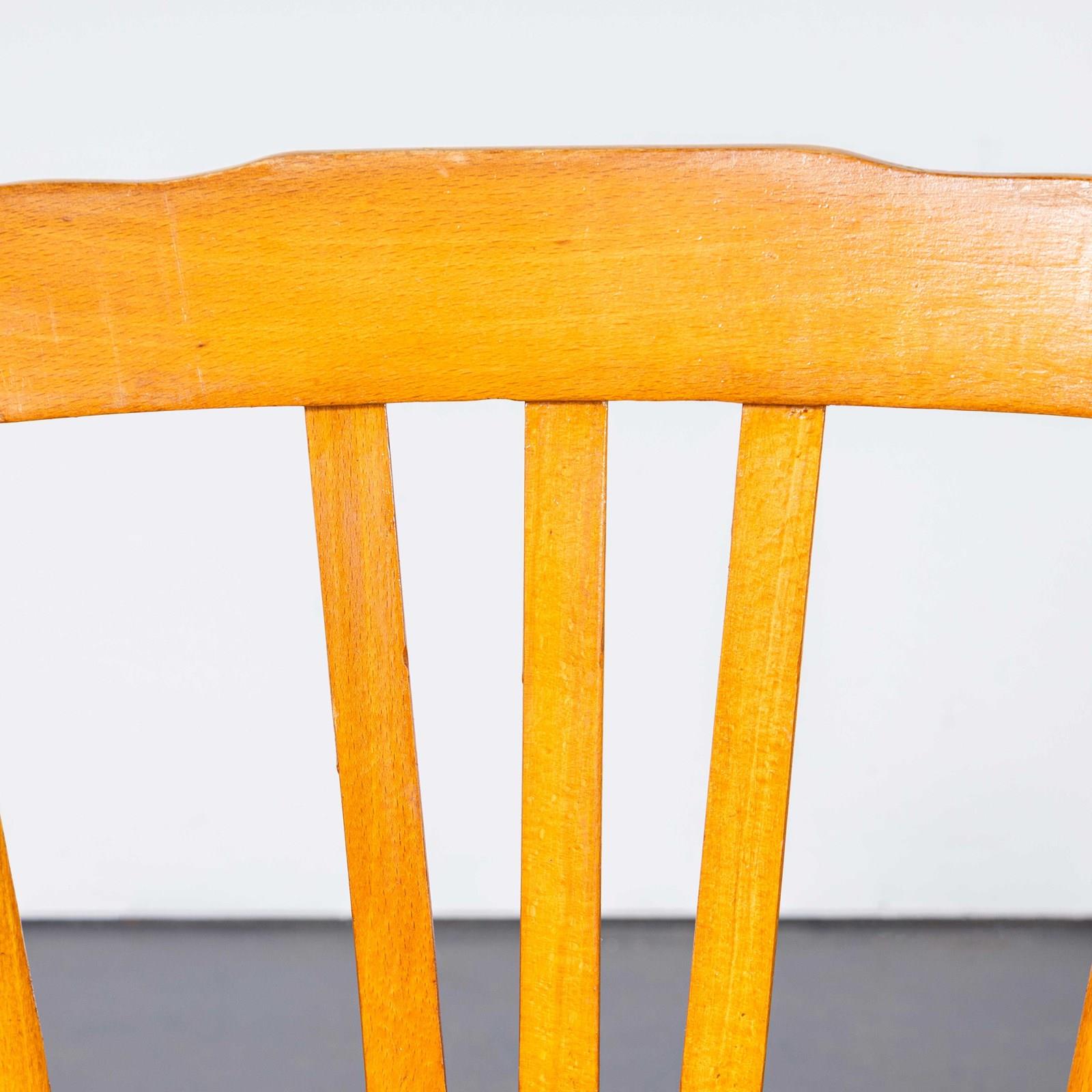 We sourced these beautiful chairs in Provence. The process of steam bending beech to create elegant chairs was discovered and developed by Thonet, but when its patents expired in 1869 many companies including Luterma launched production. Luterma was one of the brands marketed by Estonian factory A.M. Luther which was founded in the late 19th Century in Tallinn. Luthers production was principally in Estonia but they also had factories in France for local market production. At the time of the Bauhaus movement Walter Gropius and Marcel Breuer worked with the factory to develop various models. These chairs date from the 1950s, a simple classic farmhouse shape with a beautiful colour and elegant grill shaped back. We service and rejuvenate each chair before it leaves our workshop and we deliver chairs of excellent quality.