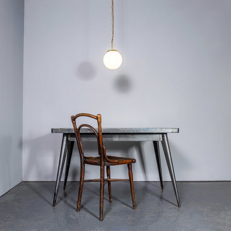 Each lamp has been cleaned and restored and all electrical components have been removed and replaced with modern European CE standard components to BS EN 60598. Each lamp is individually tested and labelled to BS EN 60598. INCLUDED: Each lamp comes completely wired and ready to install with two metres of hanging equipment (Flex chain/wire etc) as described and a matching ceiling hook as shown. The lamp is fitted with a standard E27 threaded lamp holder for which a wide range of modern and vintage style filament bulbs are widely available. We do not currently sell bulbs and recommend LED bulbs 6W maximum. We can also supply more than 2 metres of hanging cable/wire/chain etc. as required, please contact us separately to discuss. We are specialists in refurbishment of vintage lighting, please contact us with any questions regarding purchase or installation. The lamp can be wired for compliance in the US or any global market. Listing is for one lamp.