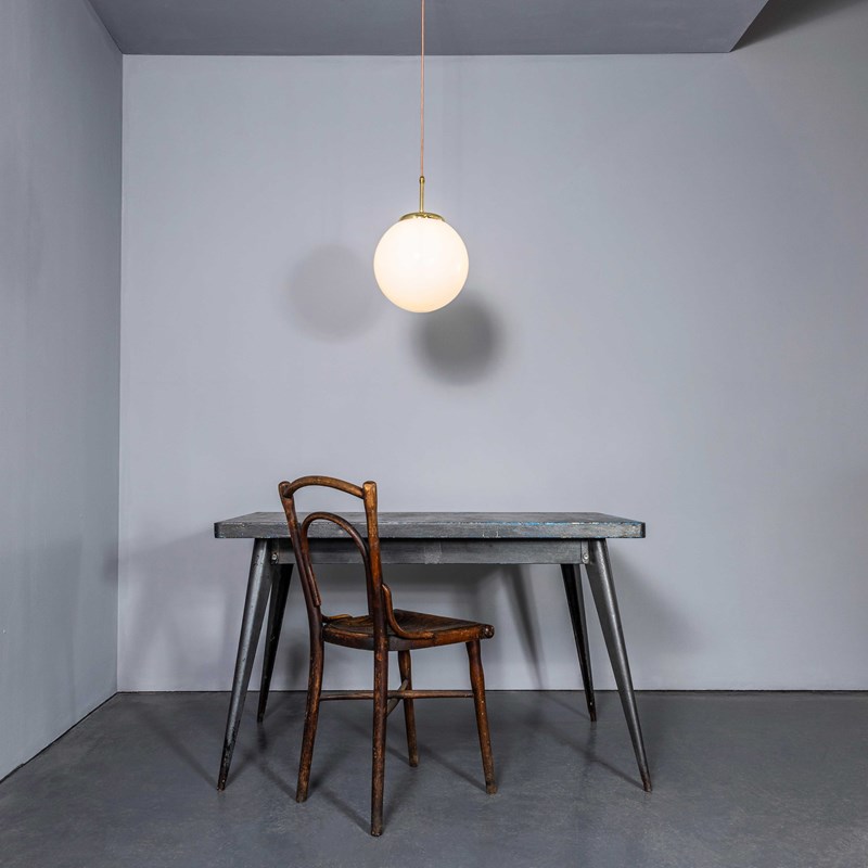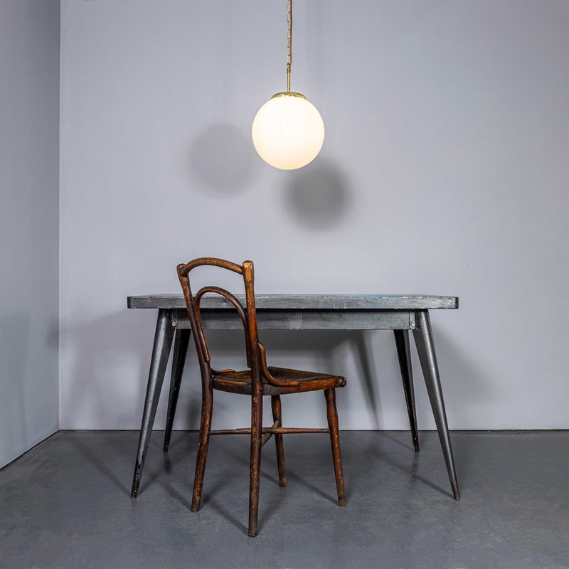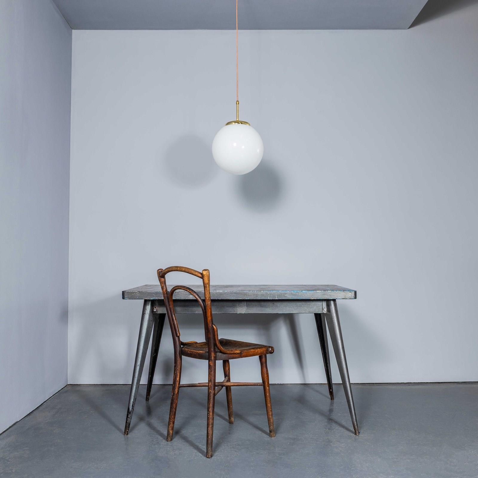 Each lamp has been cleaned and restored and all electrical components have been removed and replaced with modern European CE standard components to BS EN 60598. Each lamp is individually tested and labelled to BS EN 60598. INCLUDED: Each lamp comes completely wired and ready to install with two metres of hanging equipment (Flex chain/wire etc) as described and a matching ceiling hook as shown. The lamp is fitted with a standard E27 threaded lamp holder for which a wide range of modern and vintage style filament bulbs are widely available. We do not currently sell bulbs and recommend LED bulbs 6W maximum. We can also supply more than 2 metres of hanging cable/wire/chain etc. as required, please contact us separately to discuss. We are specialists in refurbishment of vintage lighting, please contact us with any questions regarding purchase or installation. The lamp is currently wired and fitted for UK and EU compliance. The lamp can be wired for compliance in the US or any global market. Listing is for one lamp.