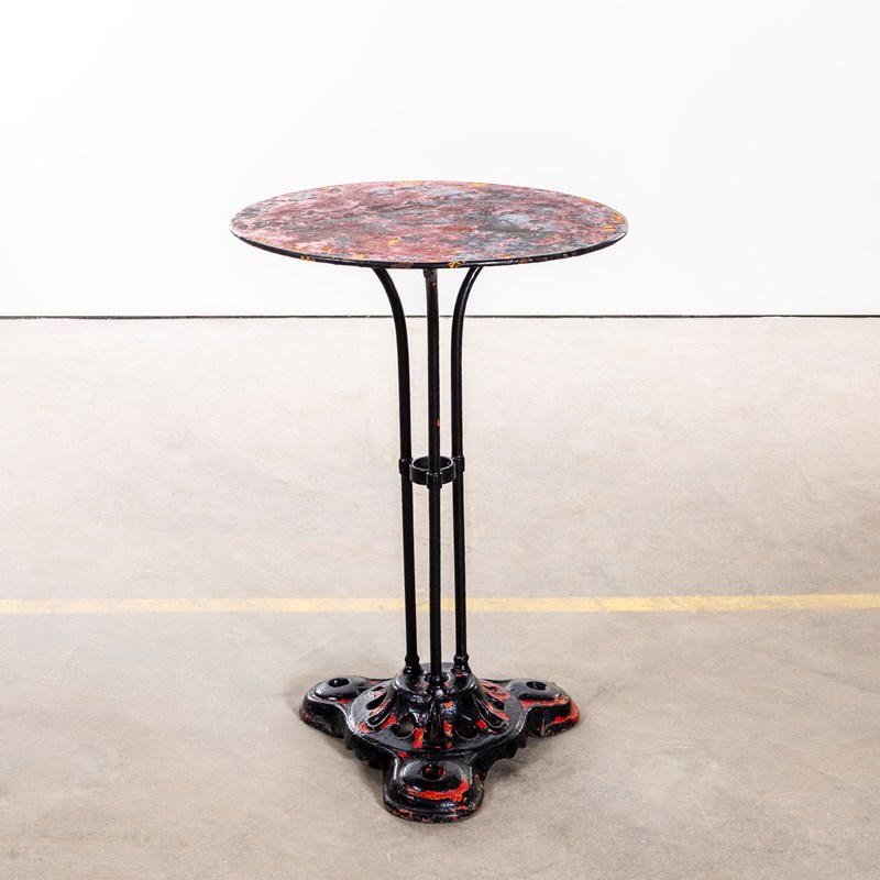 1950’s Red French Metal Tripod Base Outdoor Small Gueridon Table.