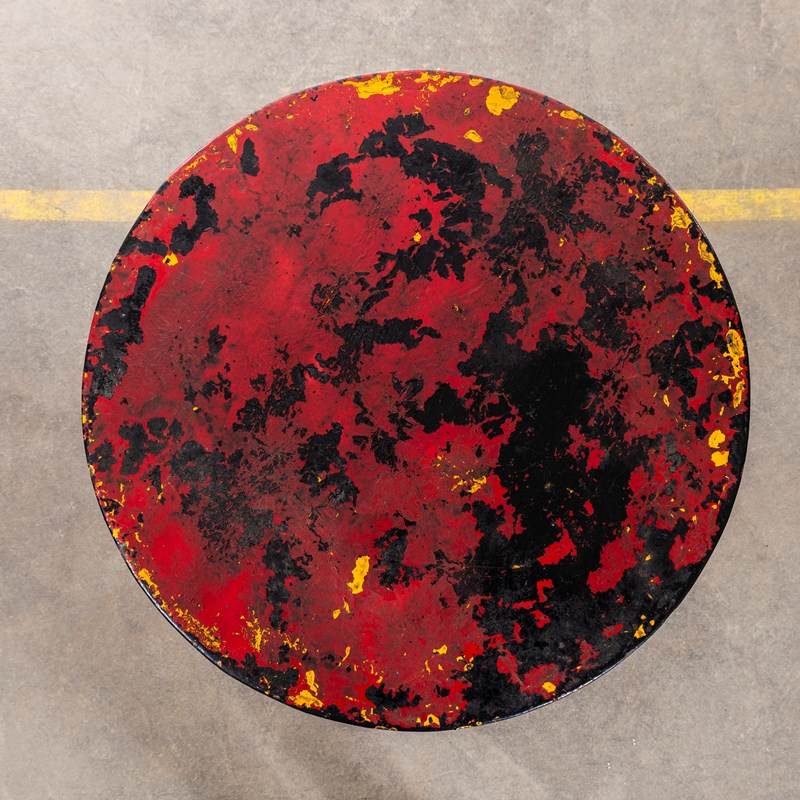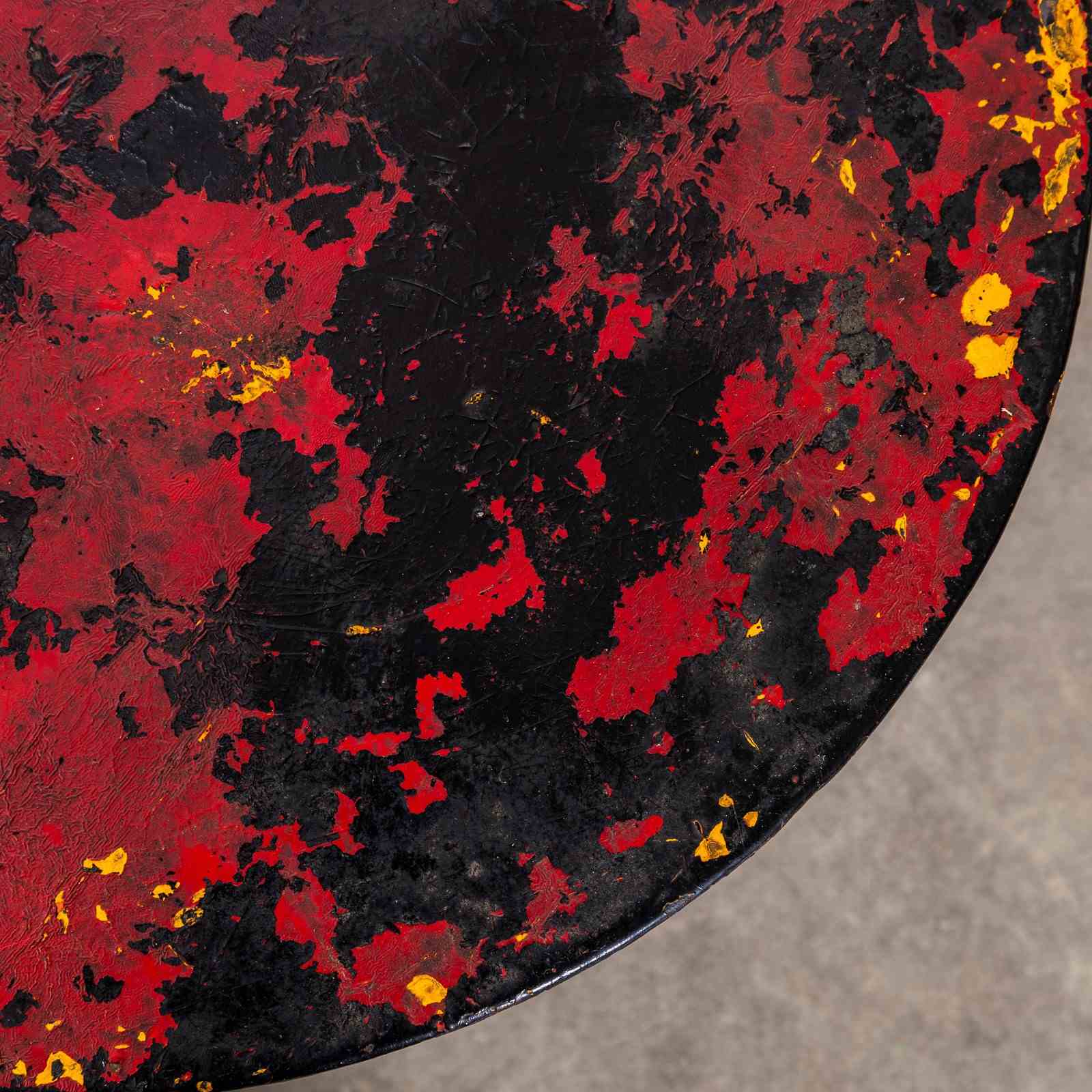 1950'S Red French Metal Tripod Base Small Gueridon Table