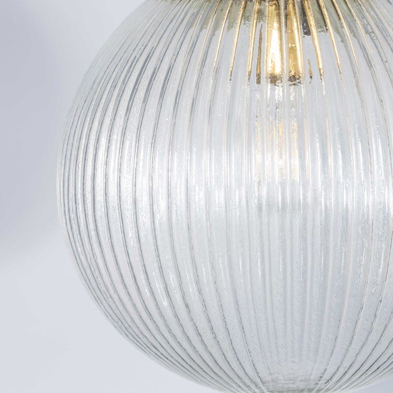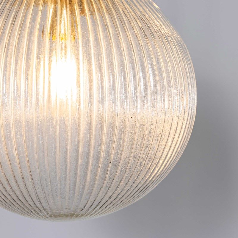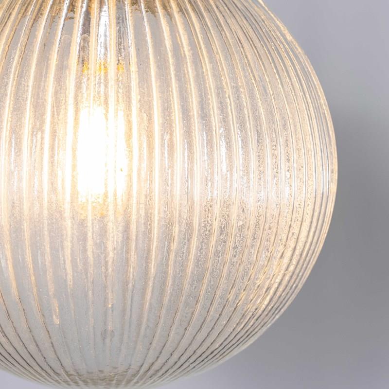 Beautiful original ribbed clear pendant lamps featuring mouth blown glass in a ribbed pattern. We have a number of these stunning original lamps available, salvaged from a hotel in the Czech republic.