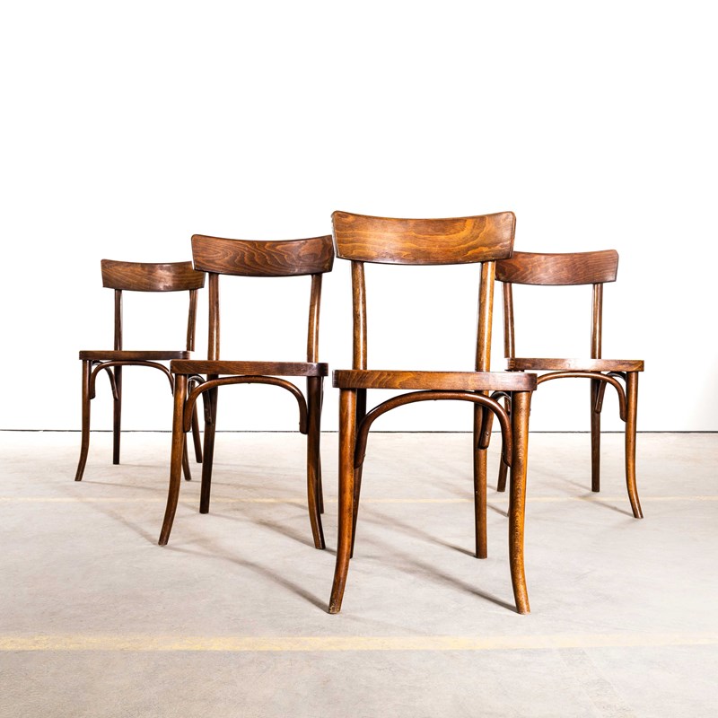 High quality good scale dining chairs produced by the famous Czech firm Ton, still trading today and producing beautiful chairs. After World War II, the Thonet factory in Bystřice pod Hostýnem (Czech Republic) was nationalized by the state in the era of communism in Czechoslovakia. In 1953, the company was officially renamed TON, which is an acronym for Továrny na Ohýbaný Nábytek, meaning “Bentwood Furniture Factory” in Czech. We have gently restored the frame but kept the original character and patina which is what this chair is all about. A strong sturdy chair of good scale with comfortable crescent shaped backs. We service each chair individually before it leaves our workshop and we deliver chairs of excellent quality.