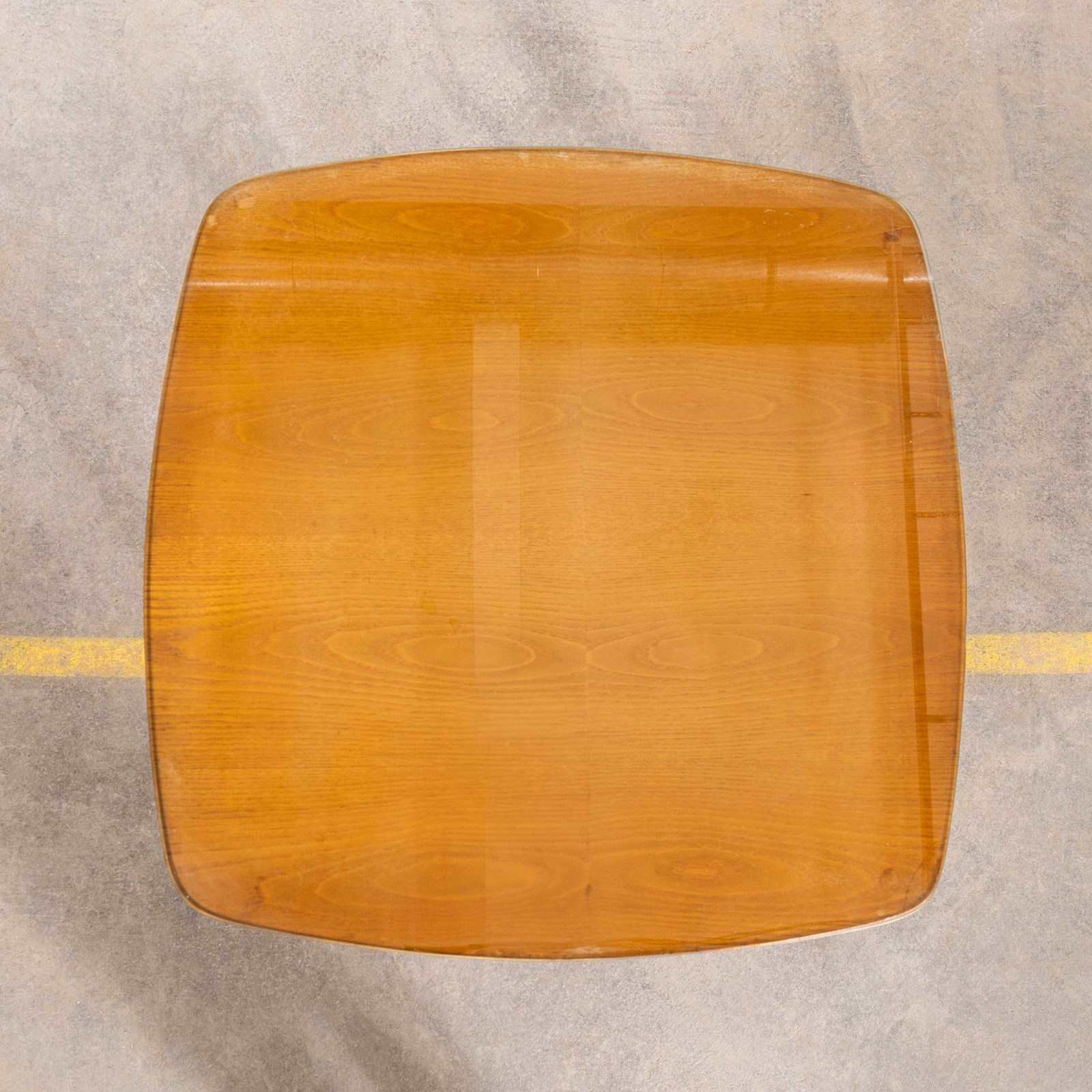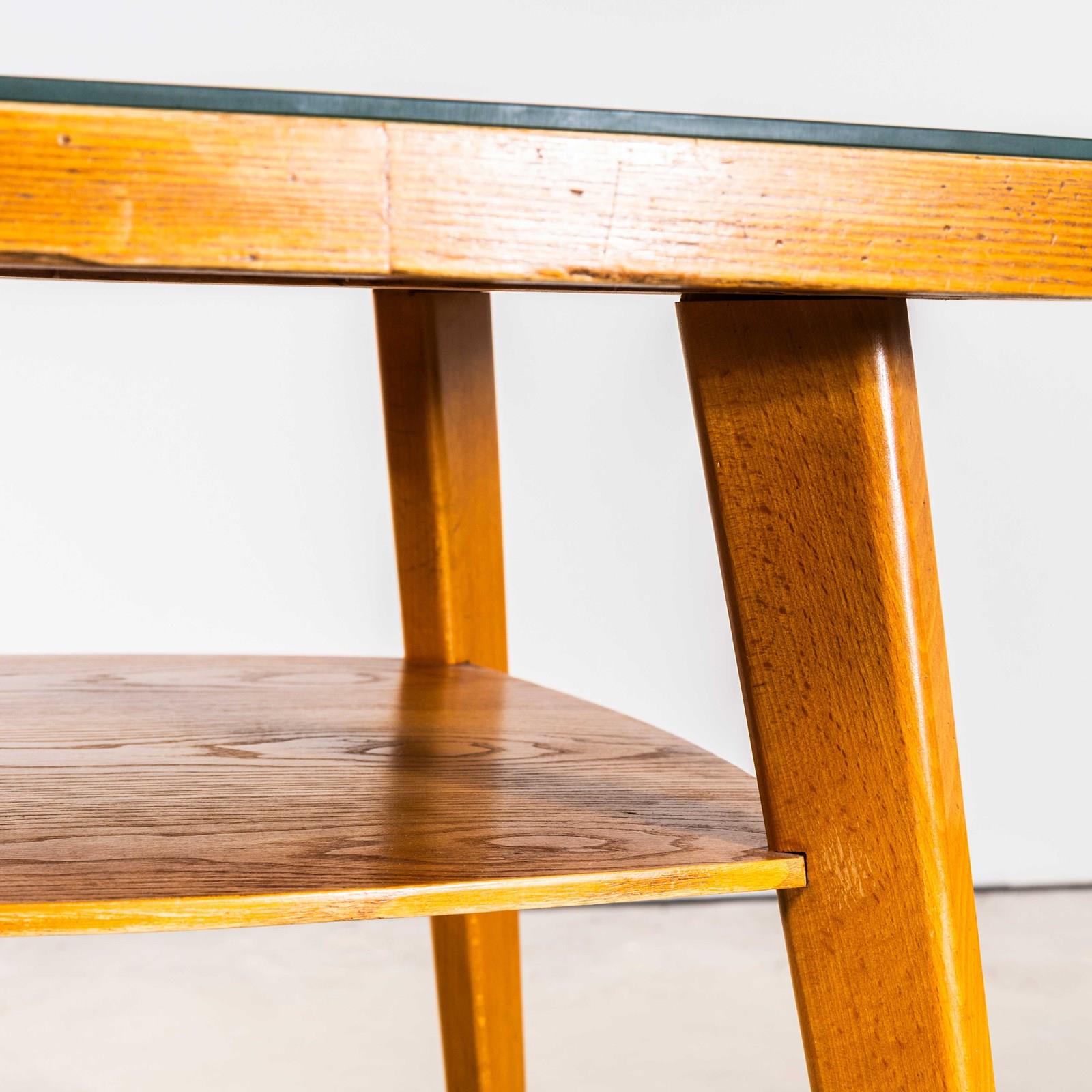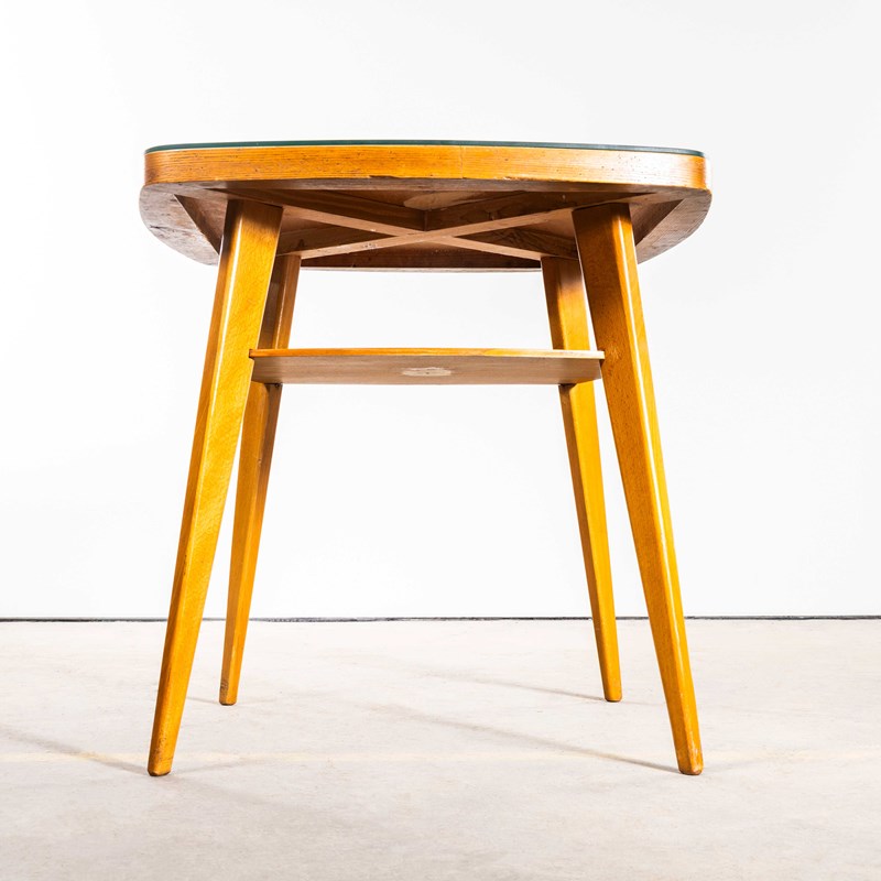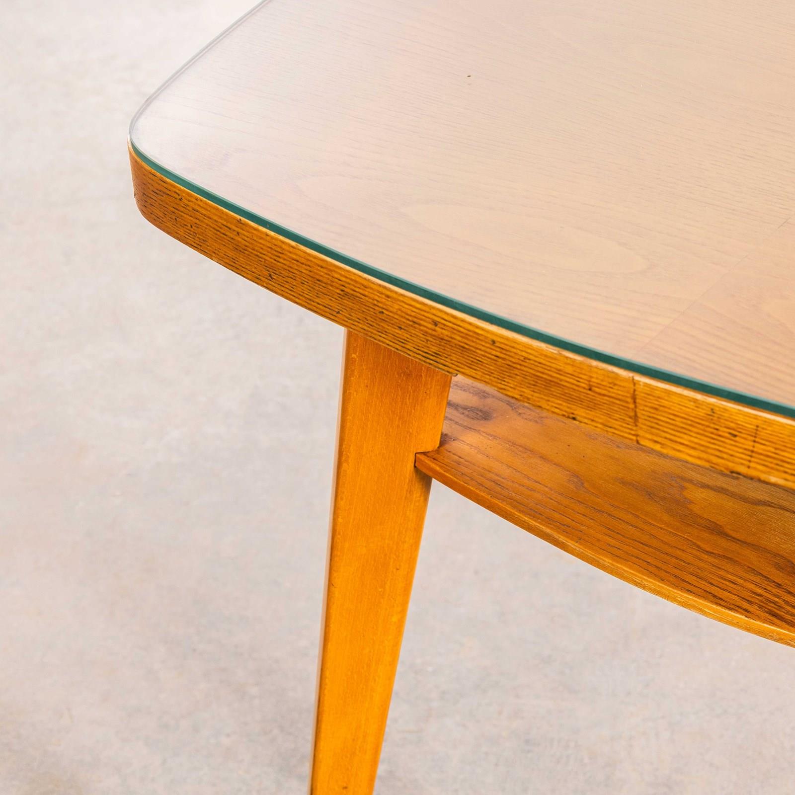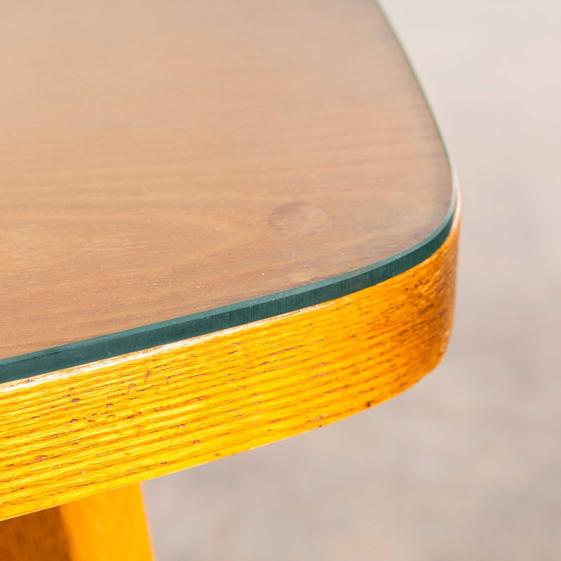Good quality glass top side table with a well figured oak top made by the Czech producer Cesky Nabytek. The table was made in Eastern Europe using oak and beech, the table is on good condition. Our workshop has cleaned and serviced the table it is strong, stable and good to go.