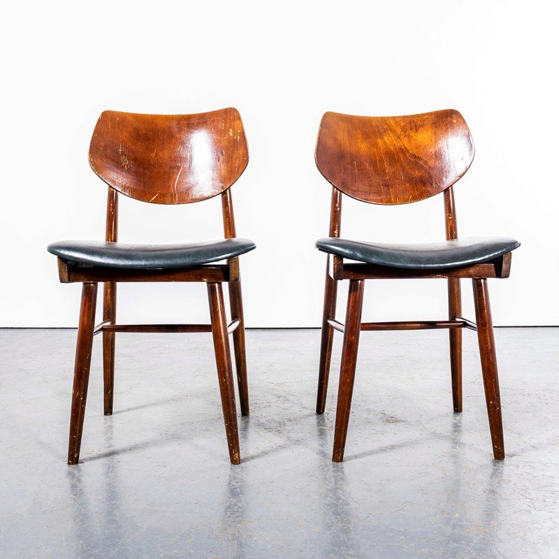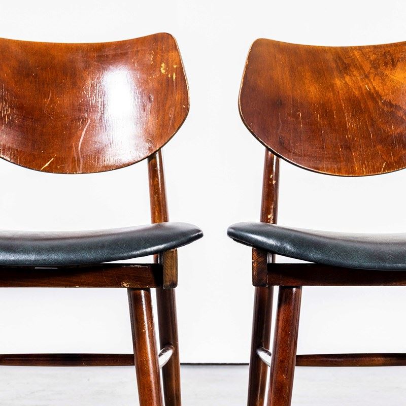 Very good quality dining chair sourced in the UK from a community hall. Originally made in the Czech republic in Sapele wood, little is known about their history but they are beautifully made and very comfortable with good scale seats and backs. The chairs are in excellent condition, every chair passes through our workshop where it is serviced and rejuvenated. Each chair is cleaned and waxed making the most of the rich original grain and colour. Seat height 48cm.