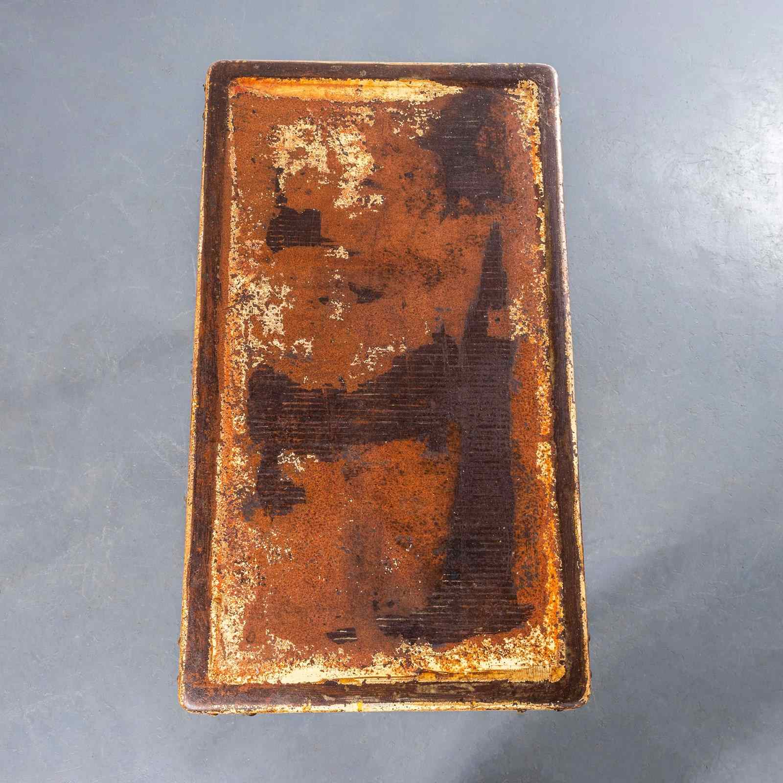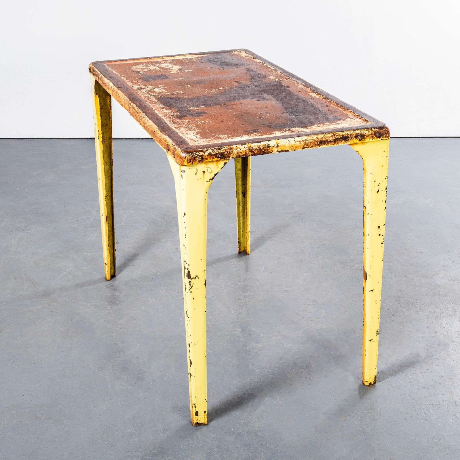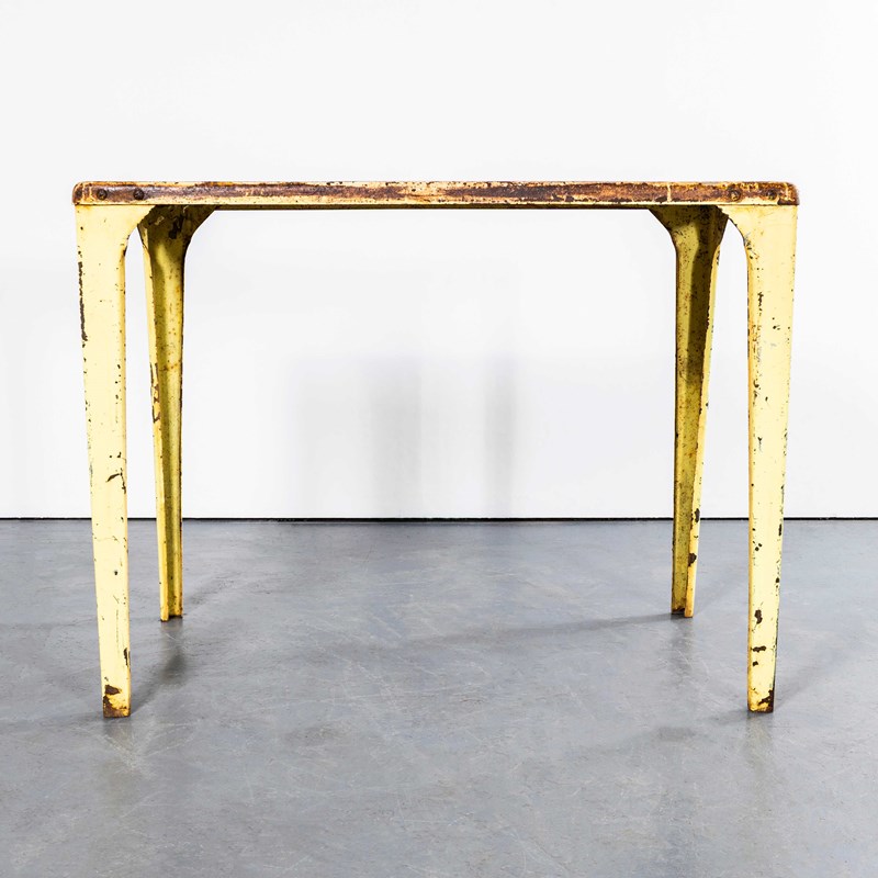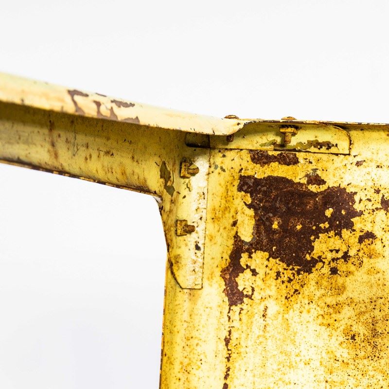 We found this on our travels in Wales, it is a simple workshop table made of pressed steel, lightweight and practical. We love the character top and the original faded yellow, perfect as an outdoor table or side table. Knee Clearance: 74cm