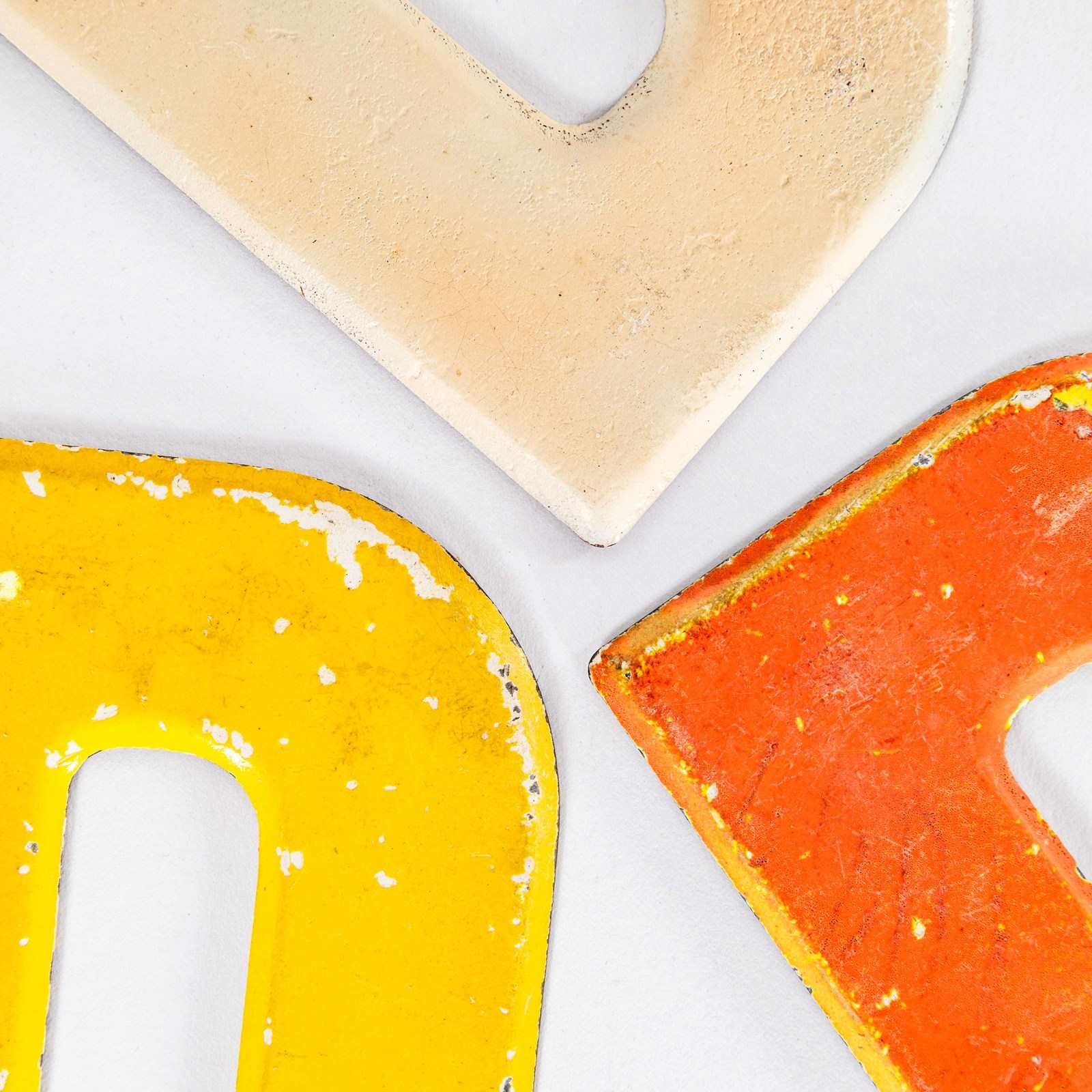 We sourced these from an old gas station in America, thought to be from the 50’s and 60’s. We have a number of colours/conditions for each letter and number, all of which are shown in the images. There are additional images of all the letters and numbers together for inspiration. This listing is for a single letter or number as shown and photographed , the letter selection is random from the batch of that colour and letter. If you have a preferred colour please specify in the order notes and we will do our best to assist.