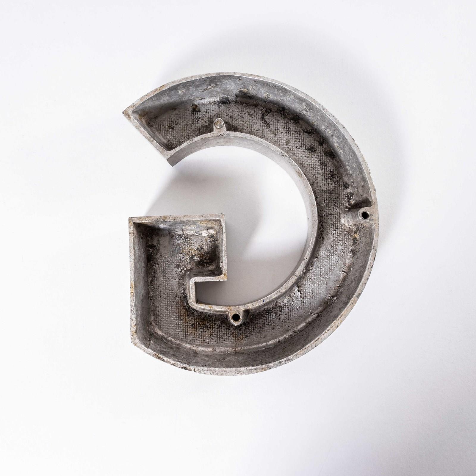 Heavy quality American cast aluminium signage letter. Listing for a single letter as photographed. Other group images are included for inspiration.