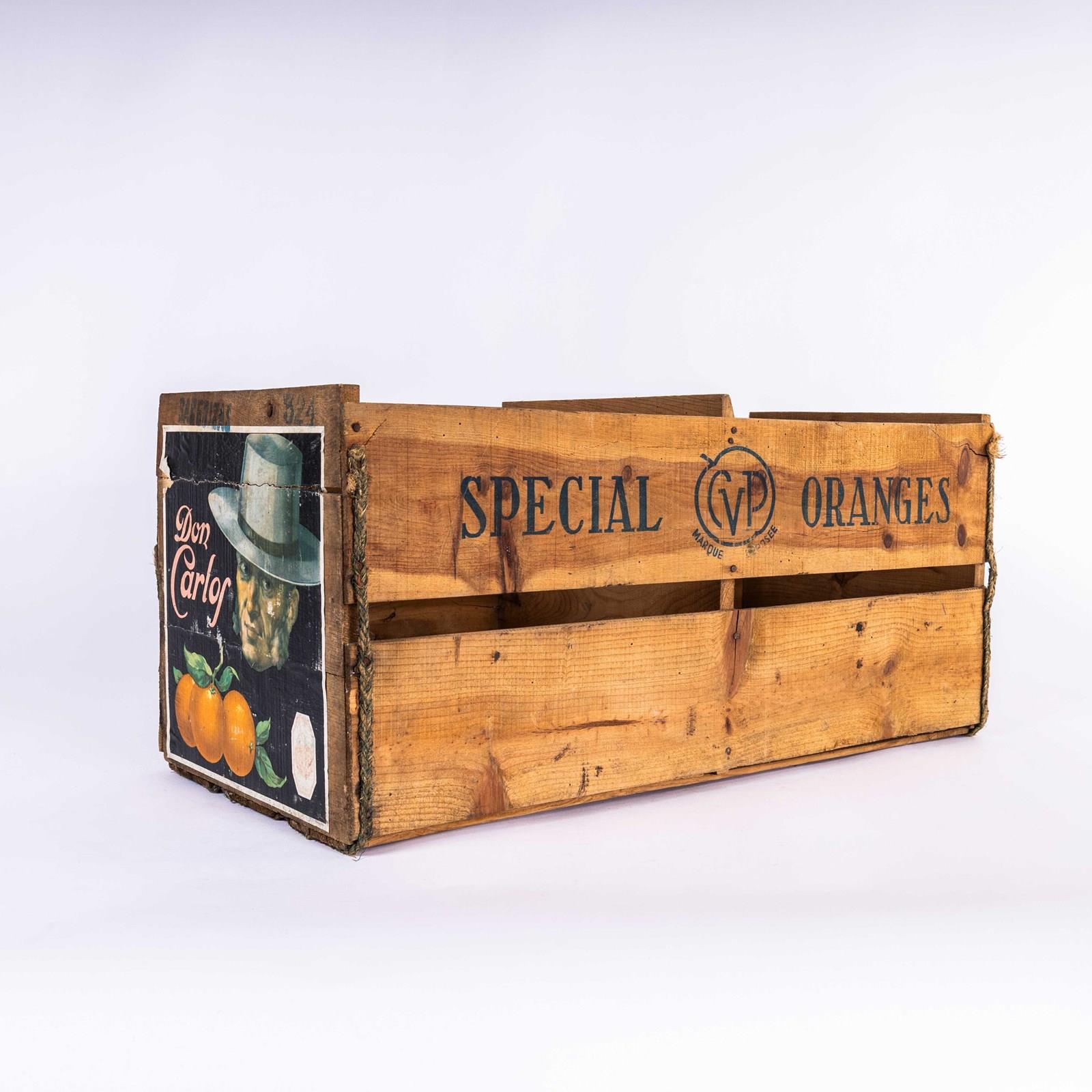 Good honest produce crate with distinct branding. Each end has it’s own unique label.
