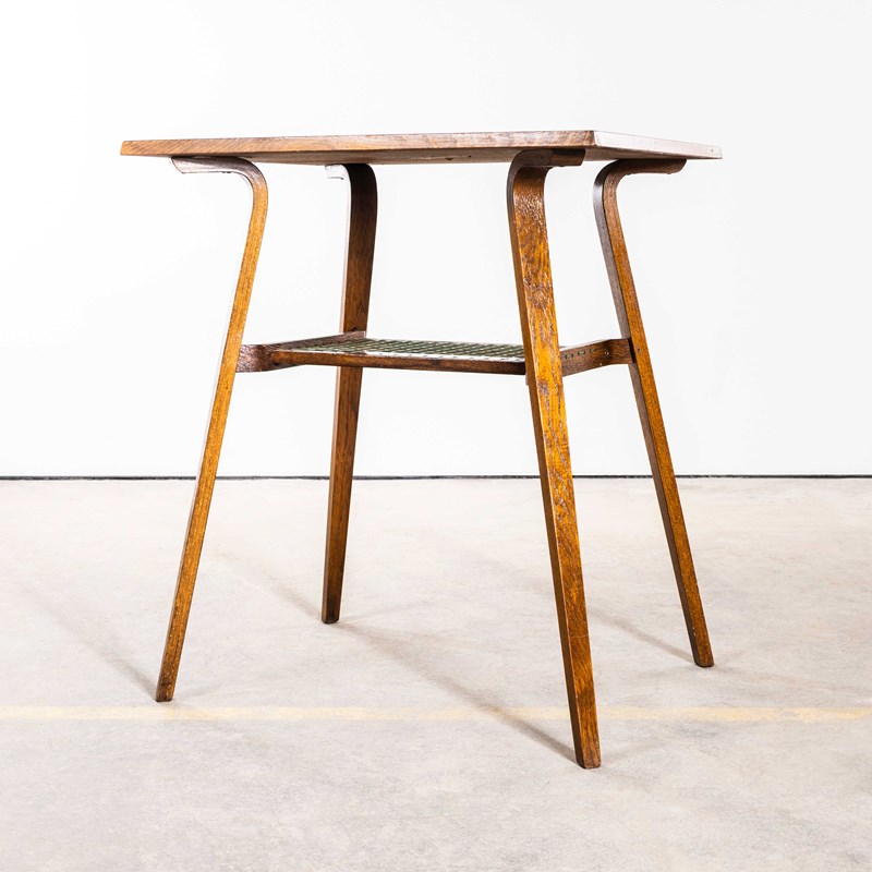 1950’s Square Angular Coffee Table With Woven Shelf.
