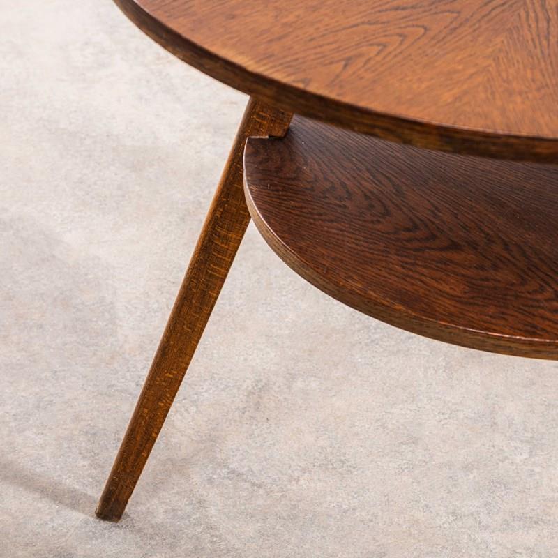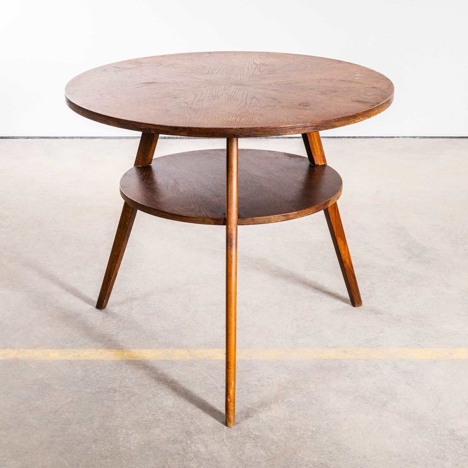 Good quality side table with a well figured oak top made by the Czech producer Cesky Nabytek. The table was made in Eastern Europe using oak and beech, the table is in good condition. Our workshop has cleaned and serviced the table it is strong, stable and good to go.