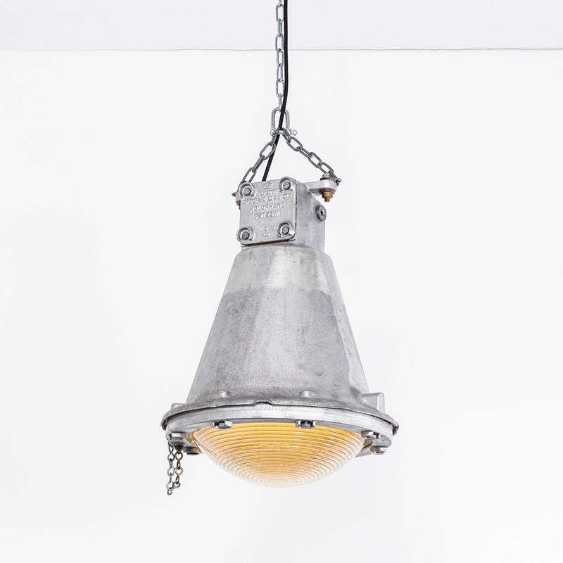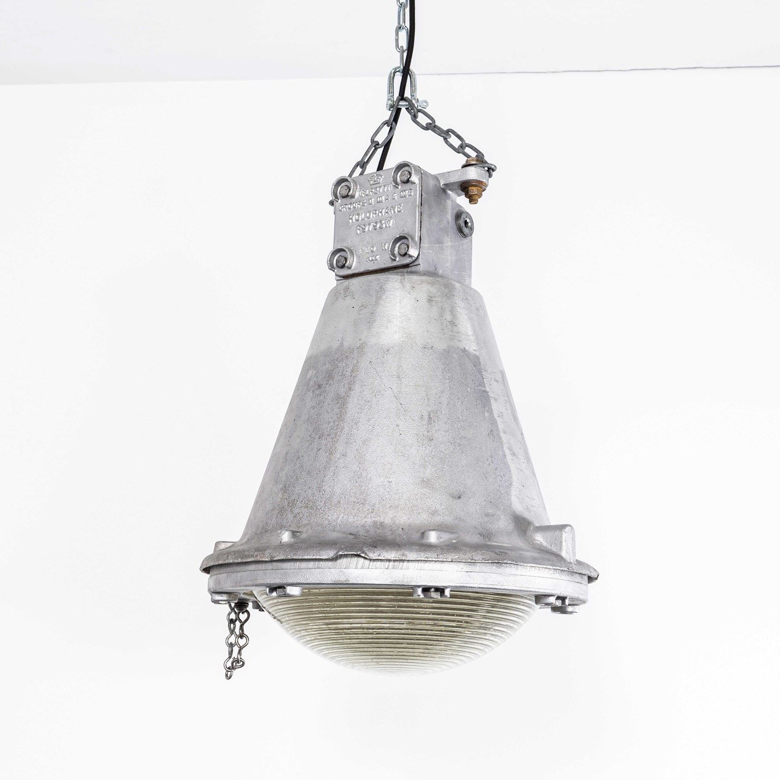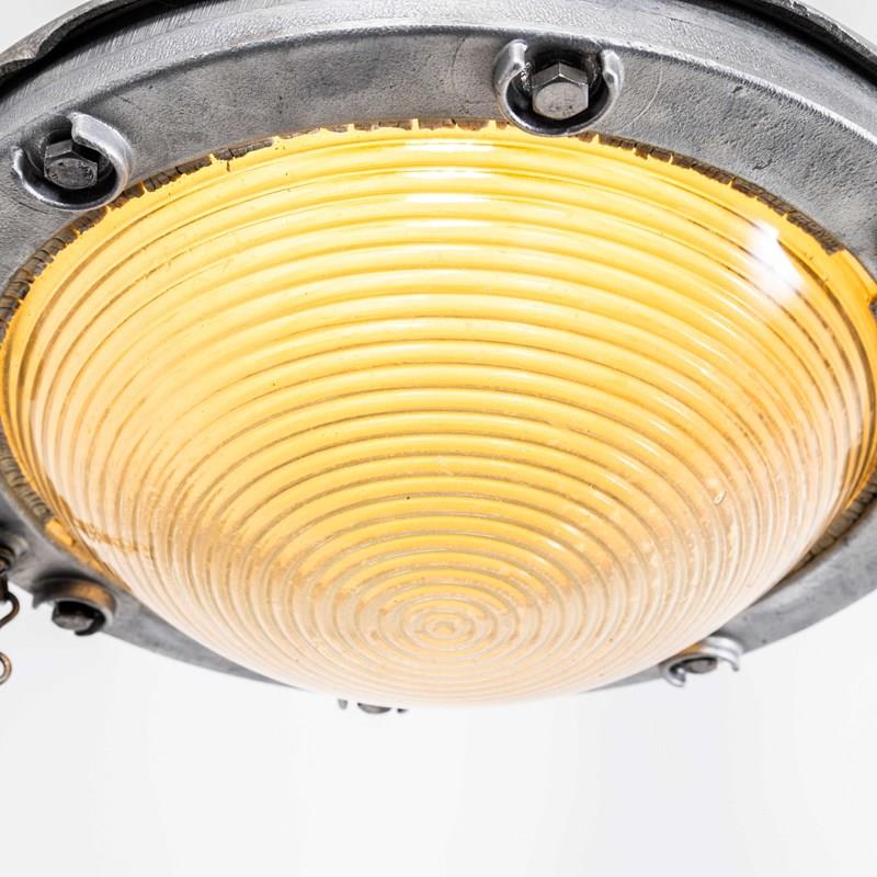 1950'S Very Large Cast Holophane Cast Aluminium Explosion Proof Convex Factory L