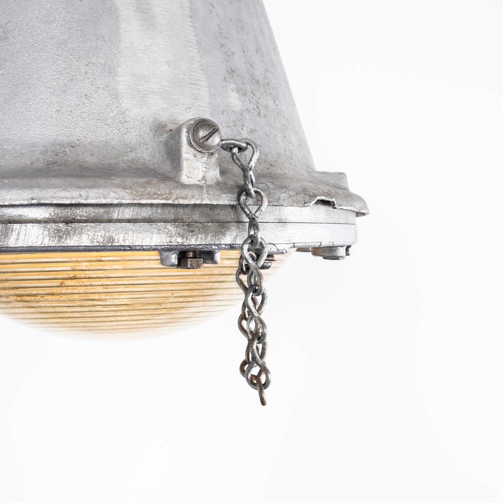 1950’s Very Large Cast Aluminium Explosion Proof Convex Factory Hanging Lights.