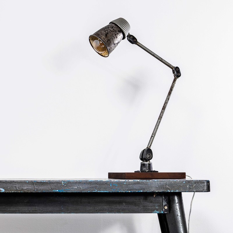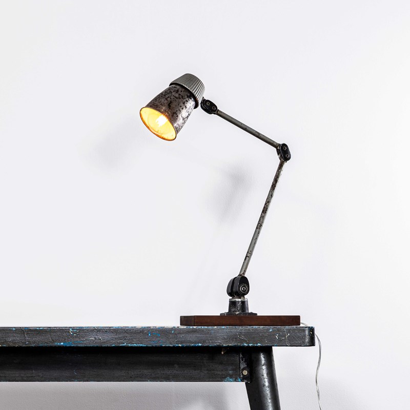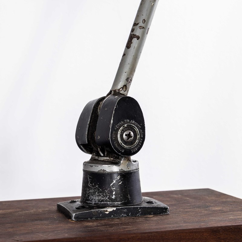 The lamp was produced by the BHI lighting company, an abbreviation for Brookhurst Igranic. The Lo – Vo Lite was widely used in workshops and factories in mid century period. The lamp has been cleaned and restored but we have left the history and character. The lamp is individually tested and labelled to BS EN 60598. INCLUDED: The lamp comes completely wired and ready to use as shown. We have mounted the lamp on a small slab of salvaged Iroko which is counter weighted underneath. The lamp is fitted with a standard E27 threaded lamp holder for which a wide range of modern and vintage style filament bulbs are widely available. We do not currently sell bulbs and recommend LED bulbs 6W maximum. The lamp is currently wired and fitted for UK and EU compliance. Please note the correct plug will be fitted for use in the delivery address country. The height of the lamp is measured when it’s fully extended.