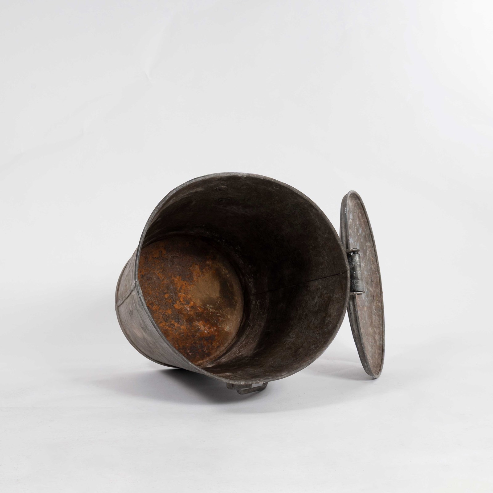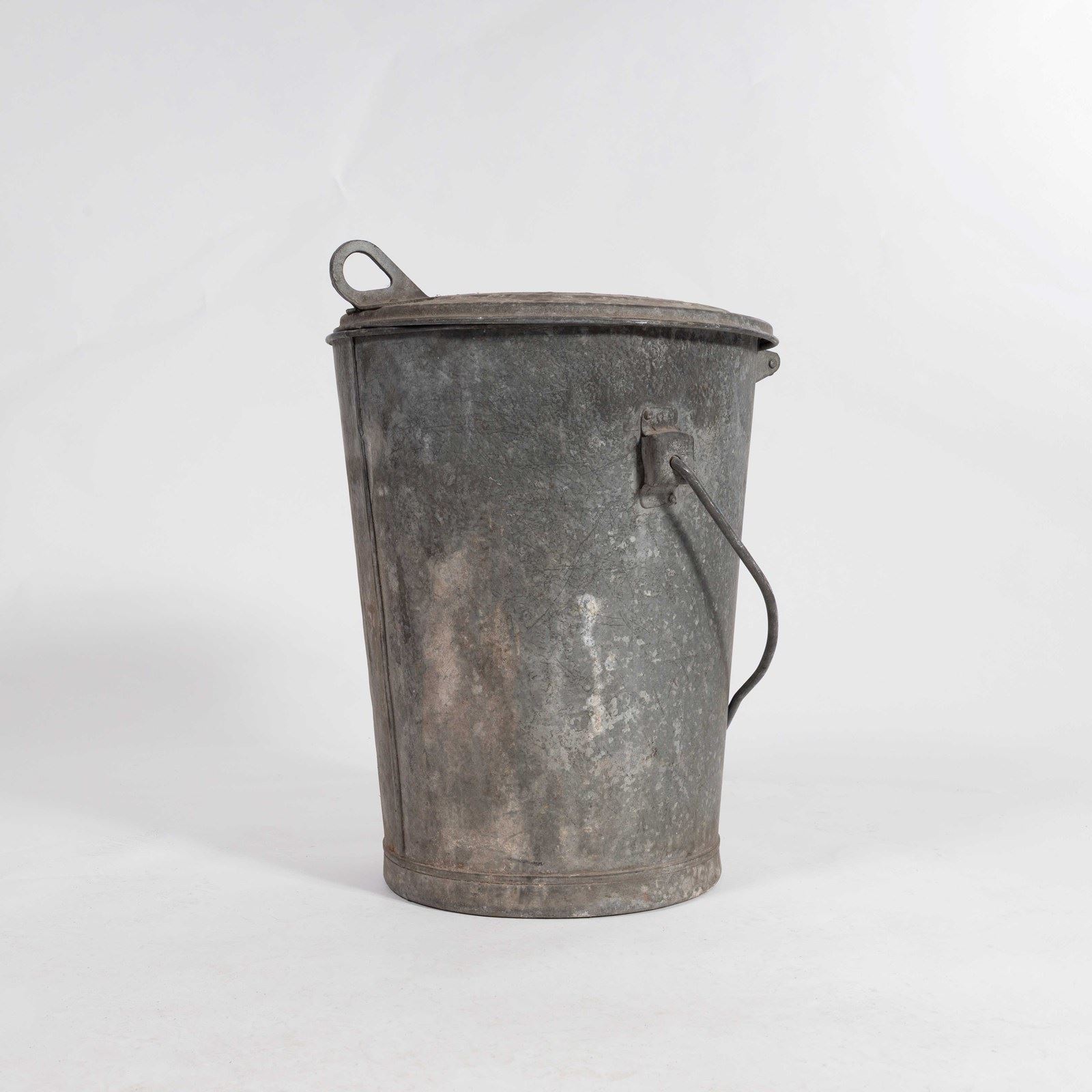 1960’s Belgian Galvanised Lidded Bucket. Simple bucket with attached hinge lid.