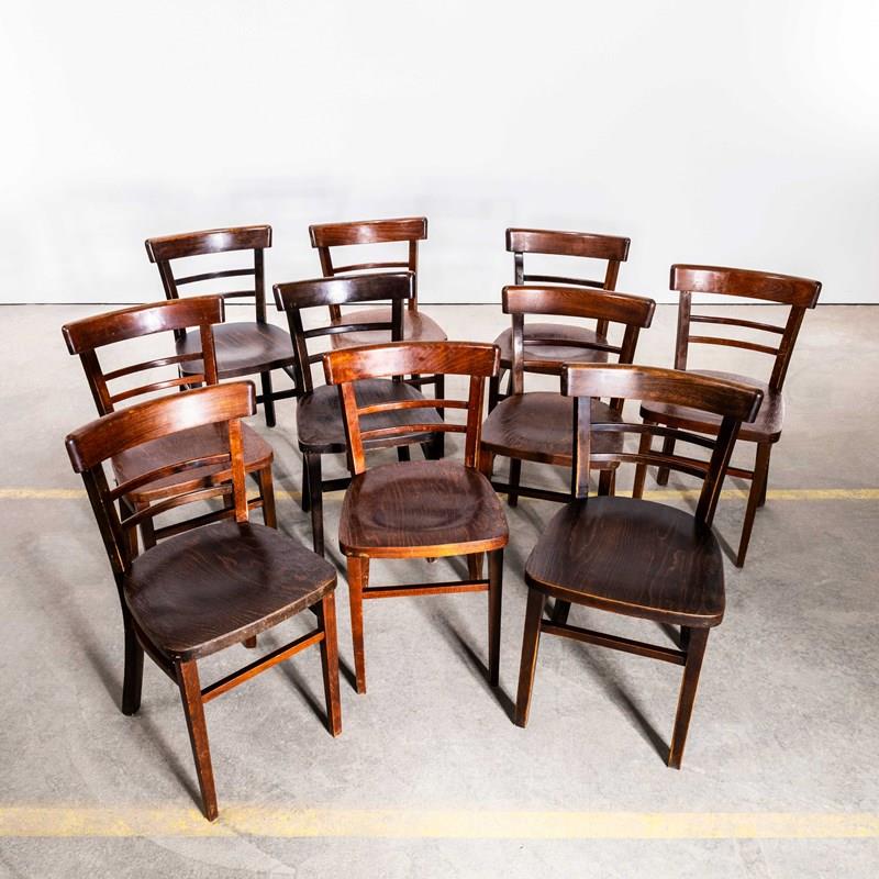 1960'S Dark Two Step Ladder Backed Dining Chair - Set Of Ten