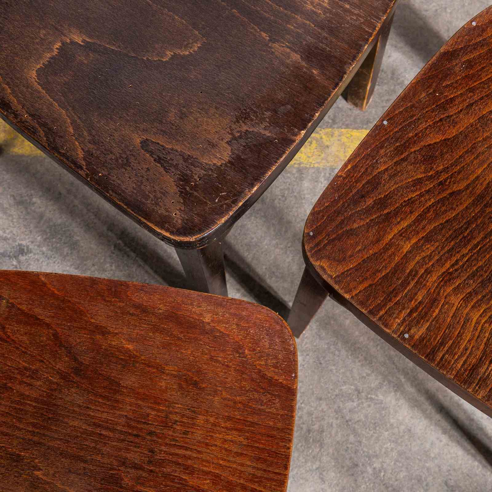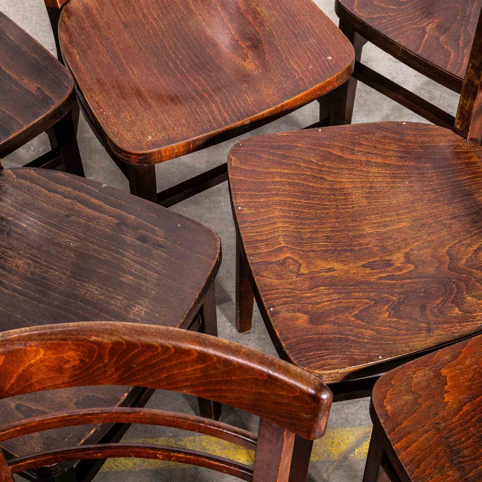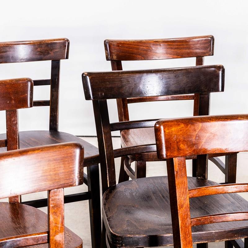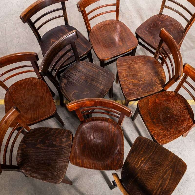 Good quality classic bentwood chairs with a deep dark oak colour and classic two step ladder back bistro design. The chairs were made in Eastern Europe using solid steam bent beech, they are a good weight robust chair with a good wear and age. Our workshop services each chair, checking joints, cleaning and waxing them.