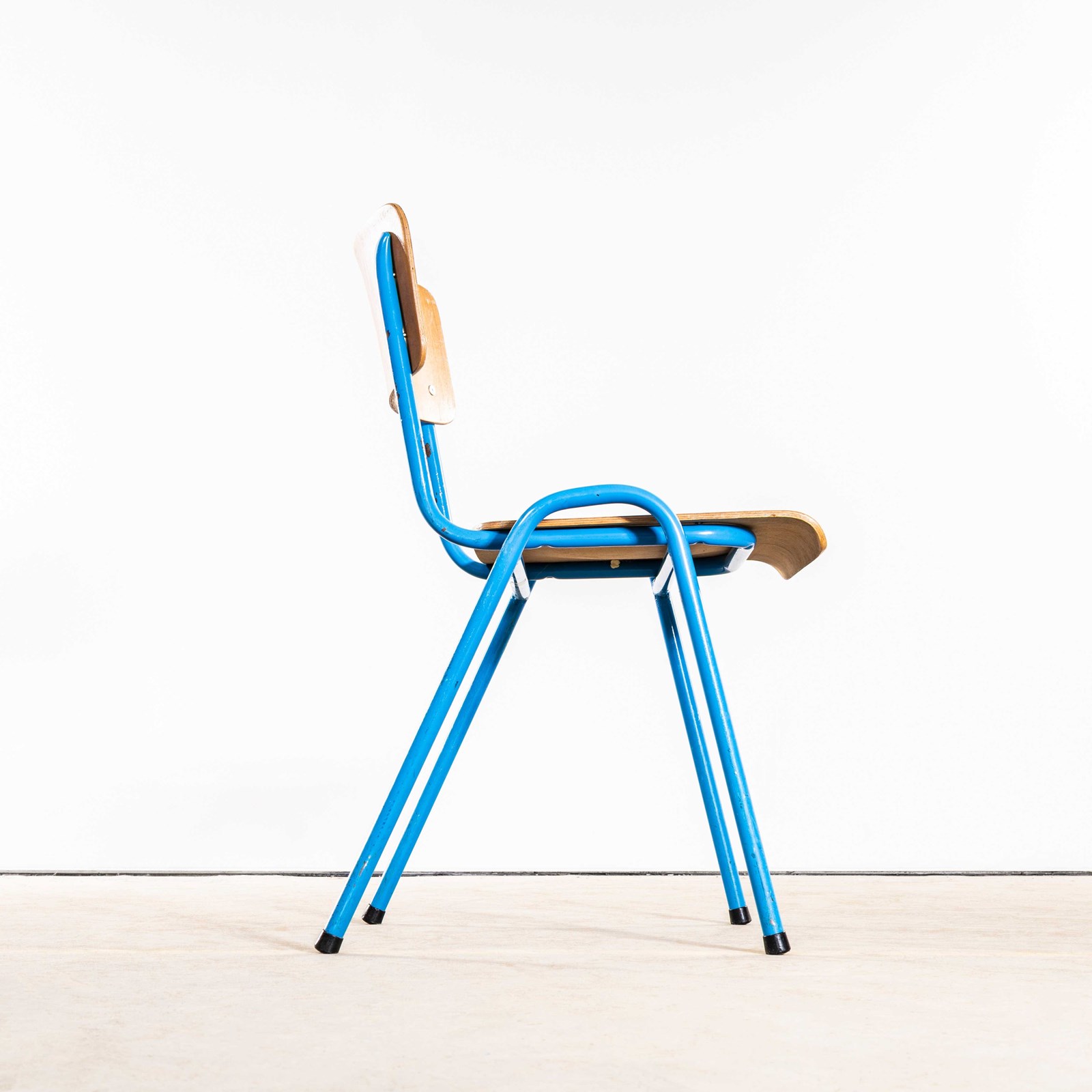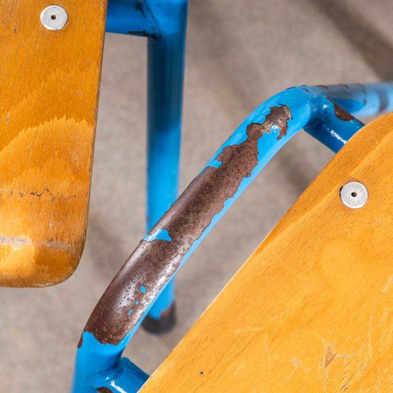 These are vintage stacking school or university dining chairs, made with shaped birch seats and backs on a metal frame. These chairs are very sturdy with the shaped seats and backs solidly riveted to the frame. These will last a life time. The seats are moulded and incredibly comfortable. The condition is lovely and original with a gentle patina throughout. We service and rejuvenate each chair before they leave our workshop and we deliver chairs of excellent quality.