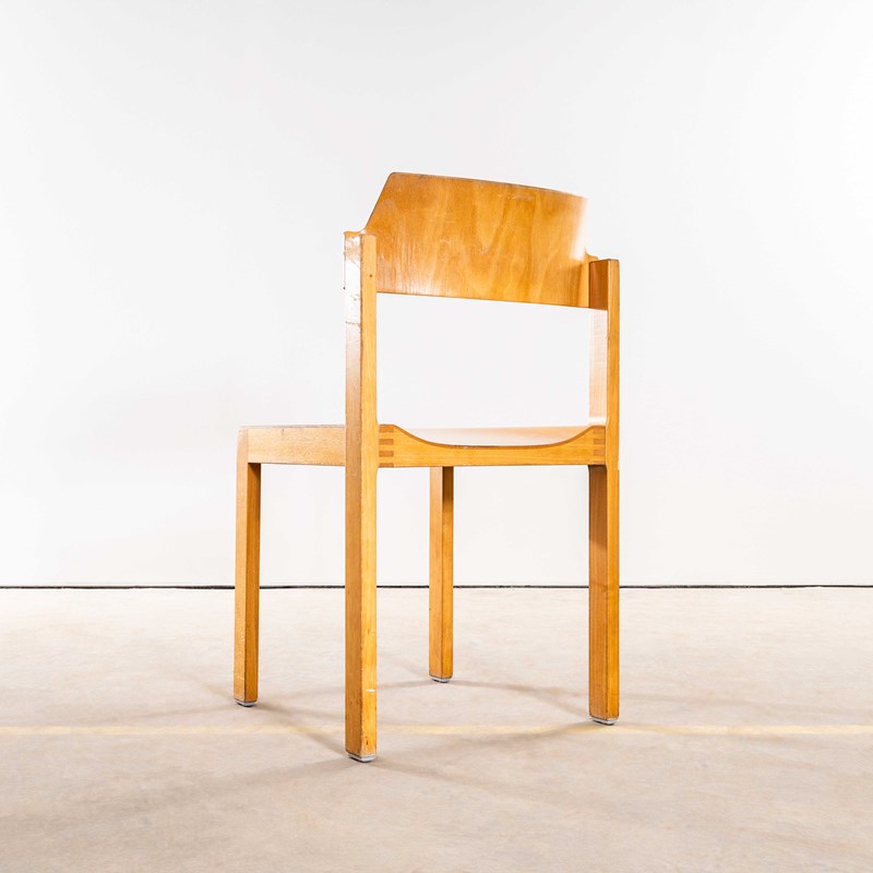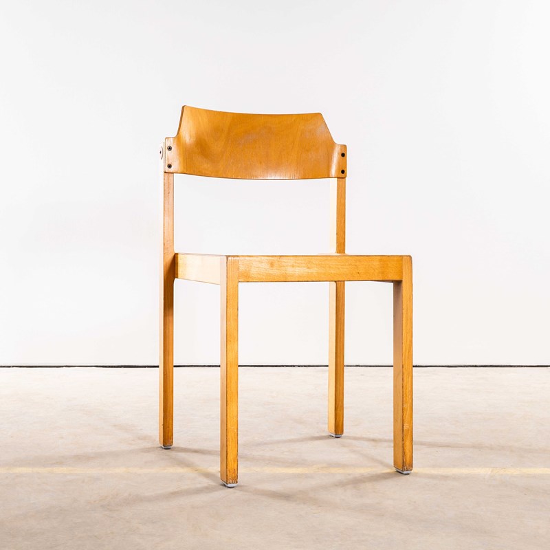 Very good batch of French mid century dining chairs. Sadly we don’t know the maker but they came from a French college and are obviously well made, we suspect they were custom made by Casala but we don’t know. The frames solid beech the seats and backs are formed/bent birch and beech. The chairs are in excellent condition and the scooped seat makes them comfortable. All chairs will pass through our workshop where they will be serviced, cleaned and waxed, ready to go. Unusual to find such as simple and elegant mid century chair in a lighter colour.