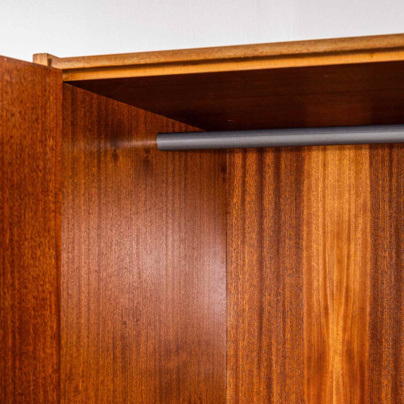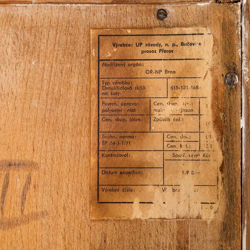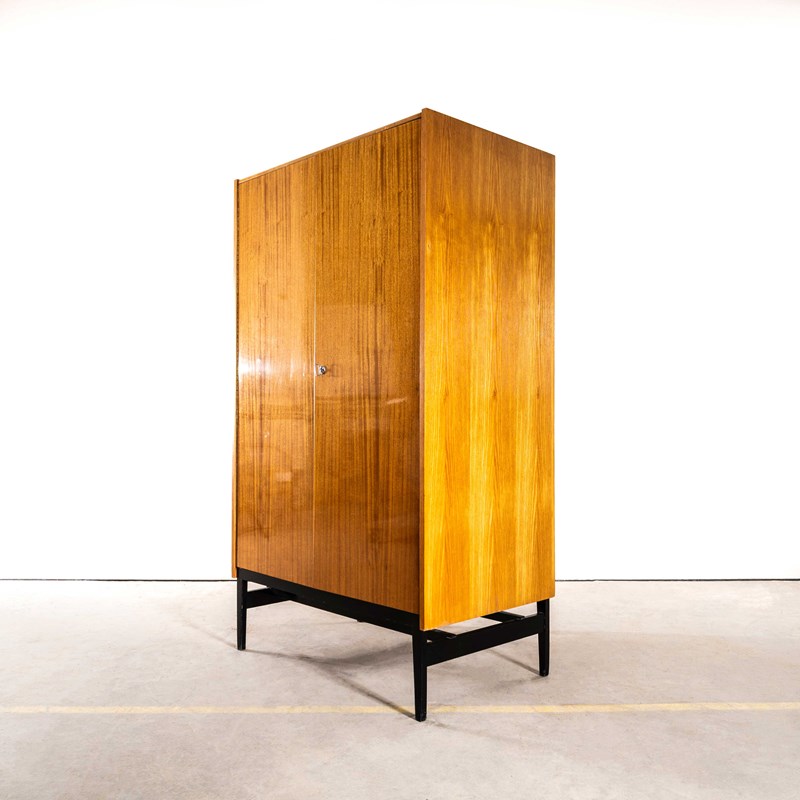Beautiful simple and classic mid century wardrobe sourced in the Czech Republic. Superb practical piece of mid century storage by the Czech maker Up Zavody and designed by Frantisek Mezulanik. Czech was a large producer of high quality mid century furniture following the surge of modernism originated by the Bauhaus school. The inside of the cabinet features a large open space with a single clothes rail. The whole cabinet is beautifully made sitting on an ebonised birch base. Our workshop has gently restored the cabinet and the cabinet is in exceptional original condition and comes with the original key.
