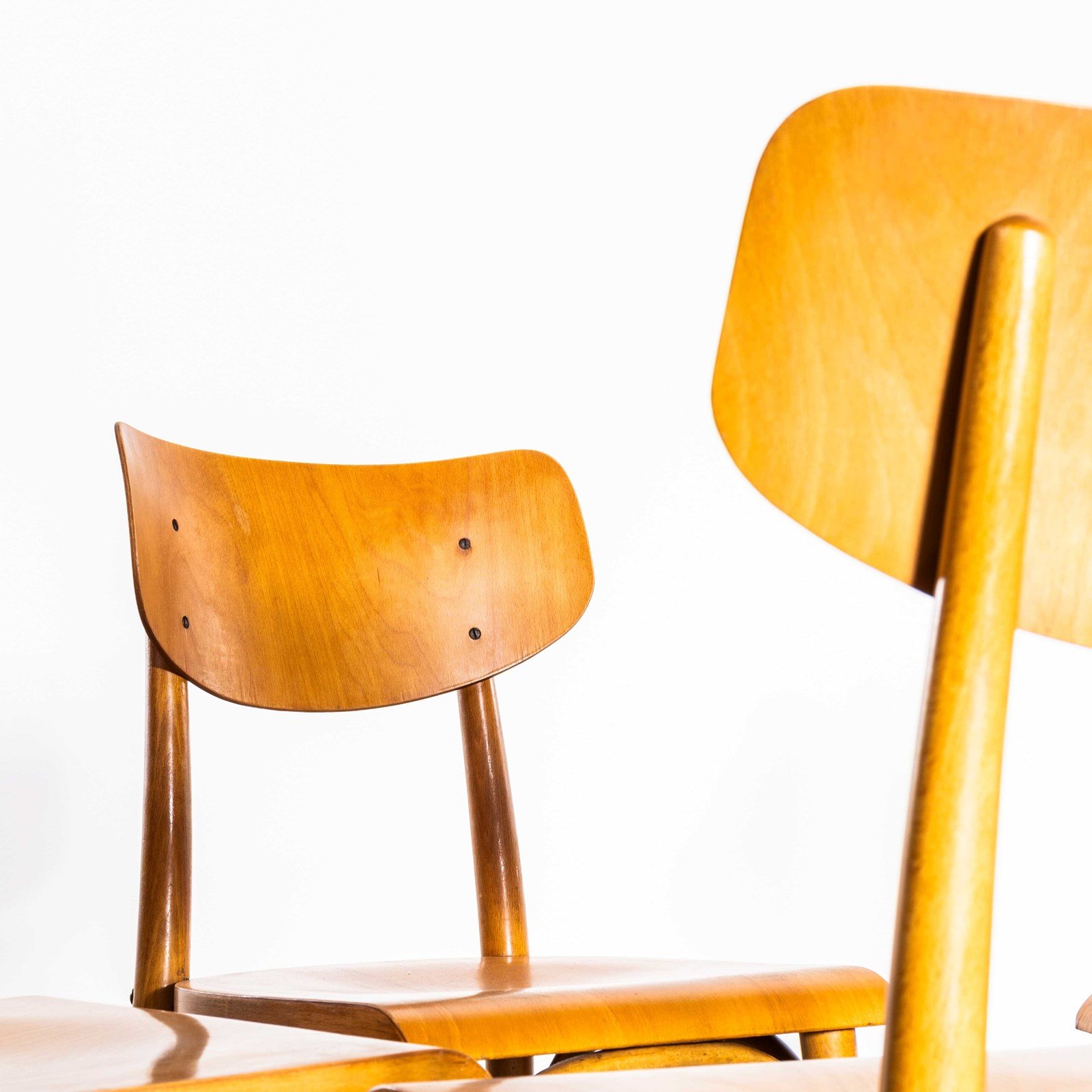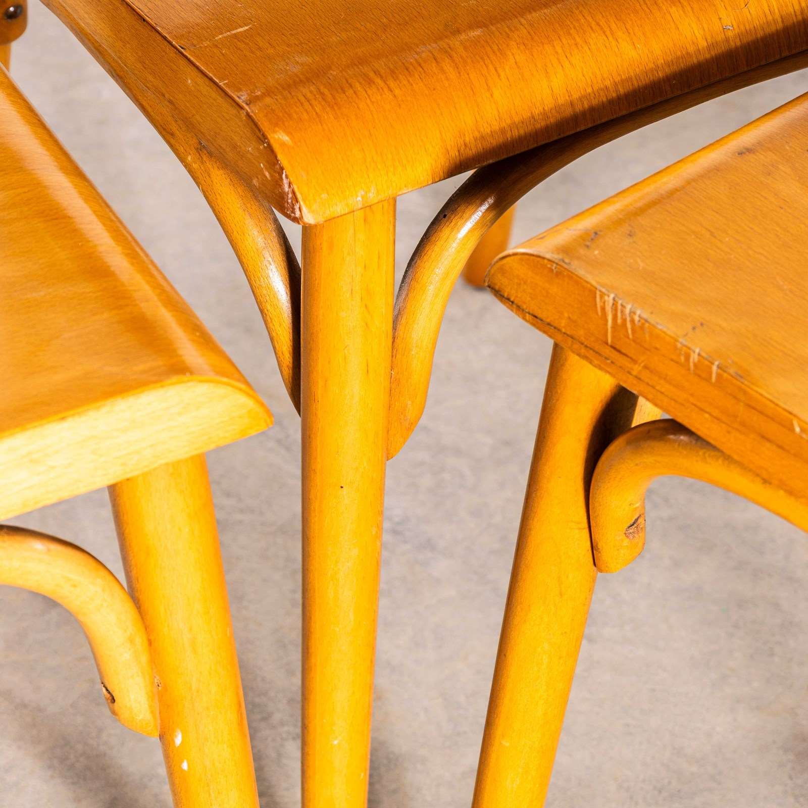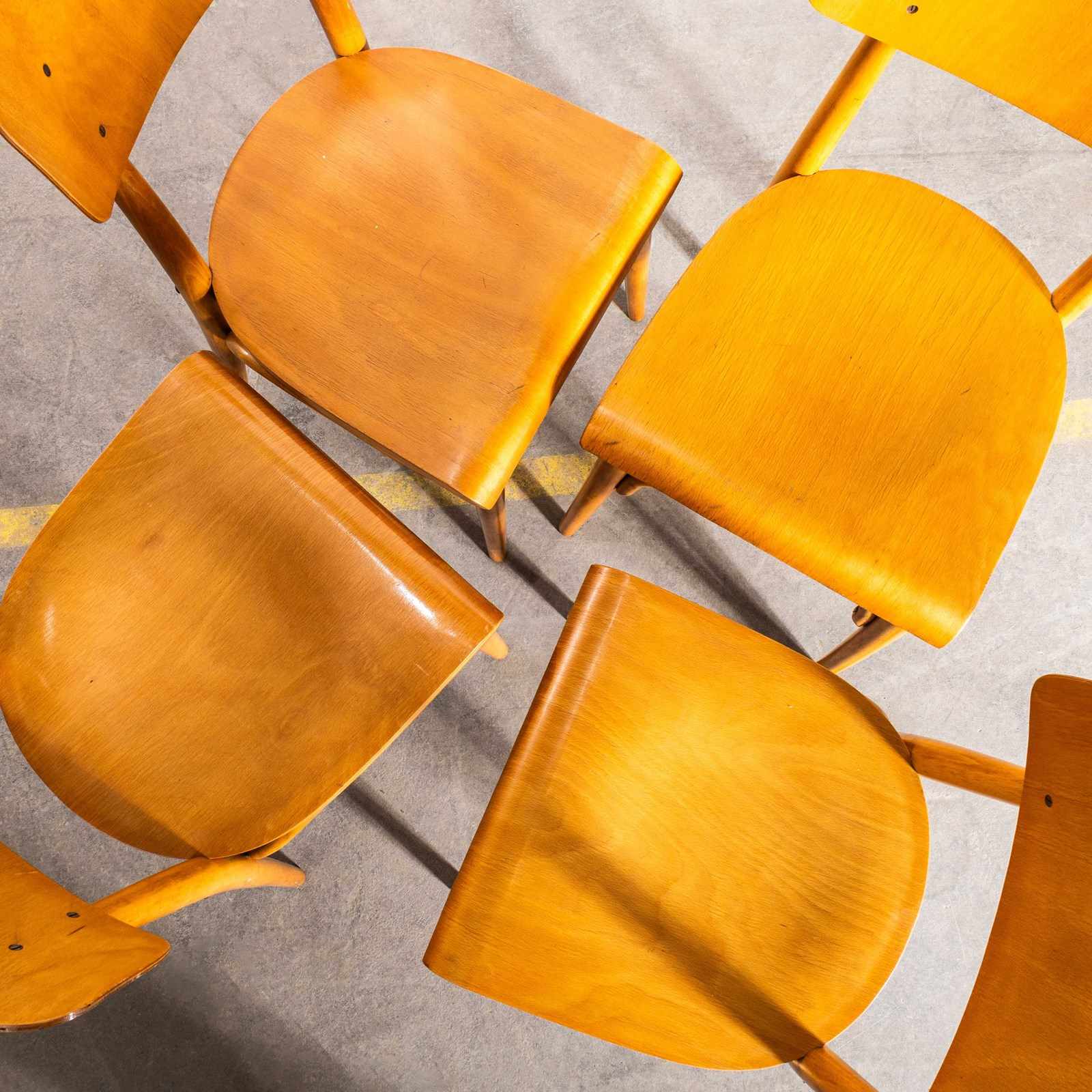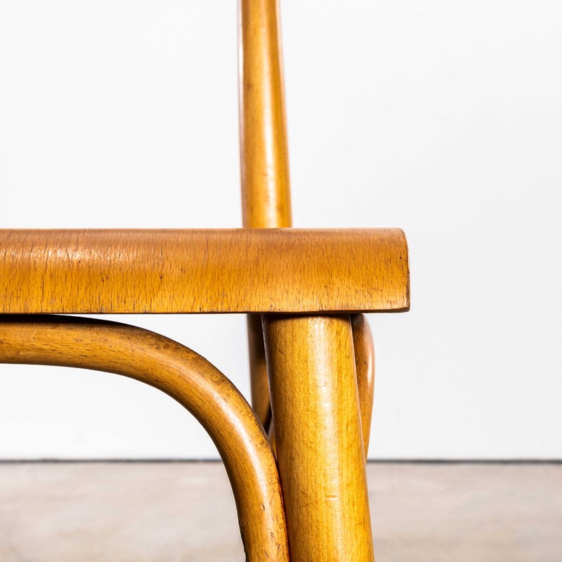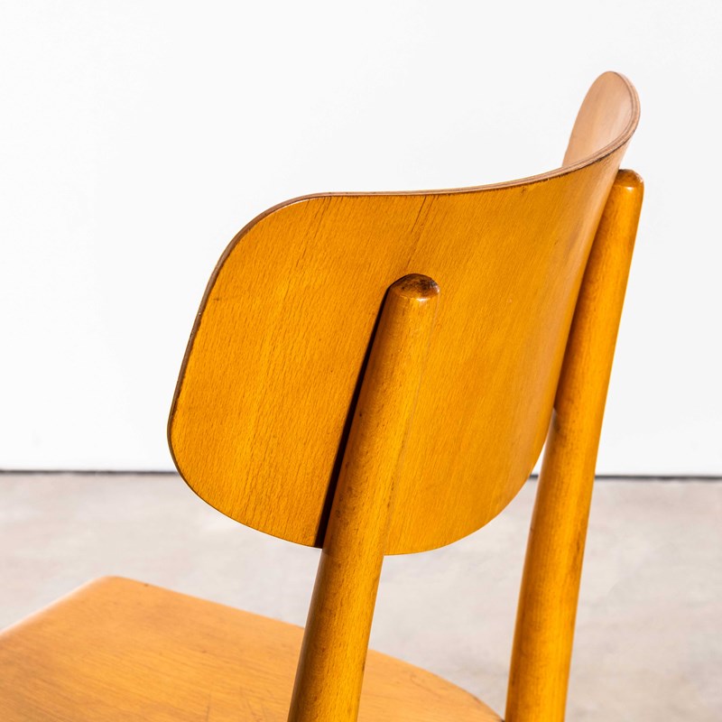 1960’s shield back chairs, good quality classic bentwood chairs with a simple contemporary shape and in clean contemporary honey blonde colour. The chairs were made in Eastern Europe by the famous producer Ton, still making chairs to this day. Made using steam bent beech, they are a good weight robust chair with a good wear and age. Our workshop has serviced each chair, they are good to go. Seat Height: 47cm.