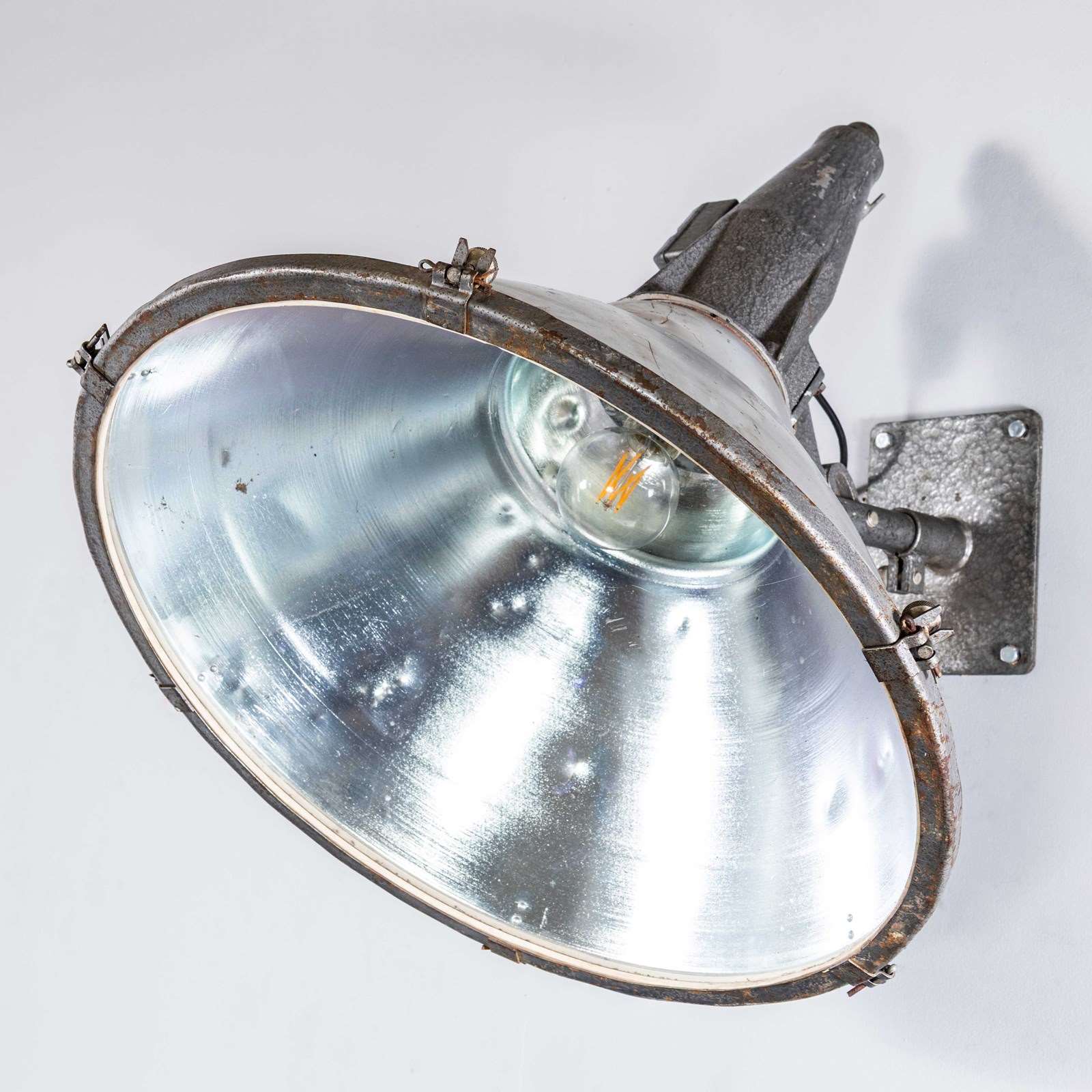 Large scale lamp with spun aluminium shade, cast aluminium tops and a heavy duty adjustable wall mount. Each lamp has been cleaned and restored and all electrical components have been removed and replaced with modern European CE standard components to BS EN 60598. Each lamp is individually tested and labelled to BS EN 60598. INCLUDED: Each lamp comes completely wired and ready to install. Each lamp is fitted with a standard E27 threaded lamp holder for which a wide range of modern and vintage style filament bulbs are widely available. We do not currently sell bulbs and recommend LED bulbs 6W maximum. We are specialists in refurbishment of vintage lighting, please contact us with any questions regarding purchase or installation. The lamp is currently wired and fitted for UK and EU compliance. The lamp can be wired for compliance in the US or any global market. Listing is for one lamp.