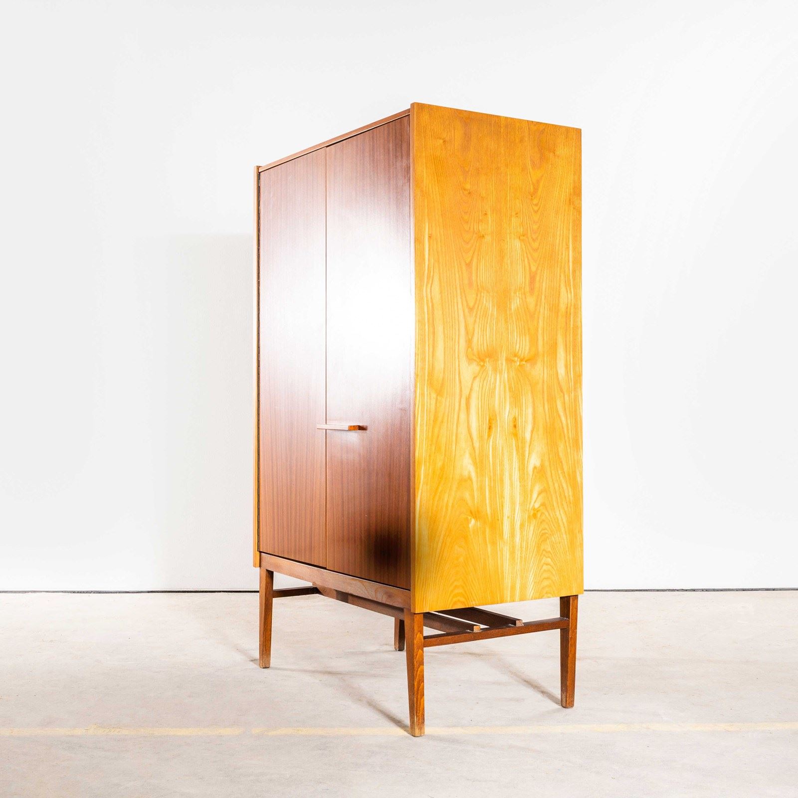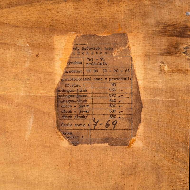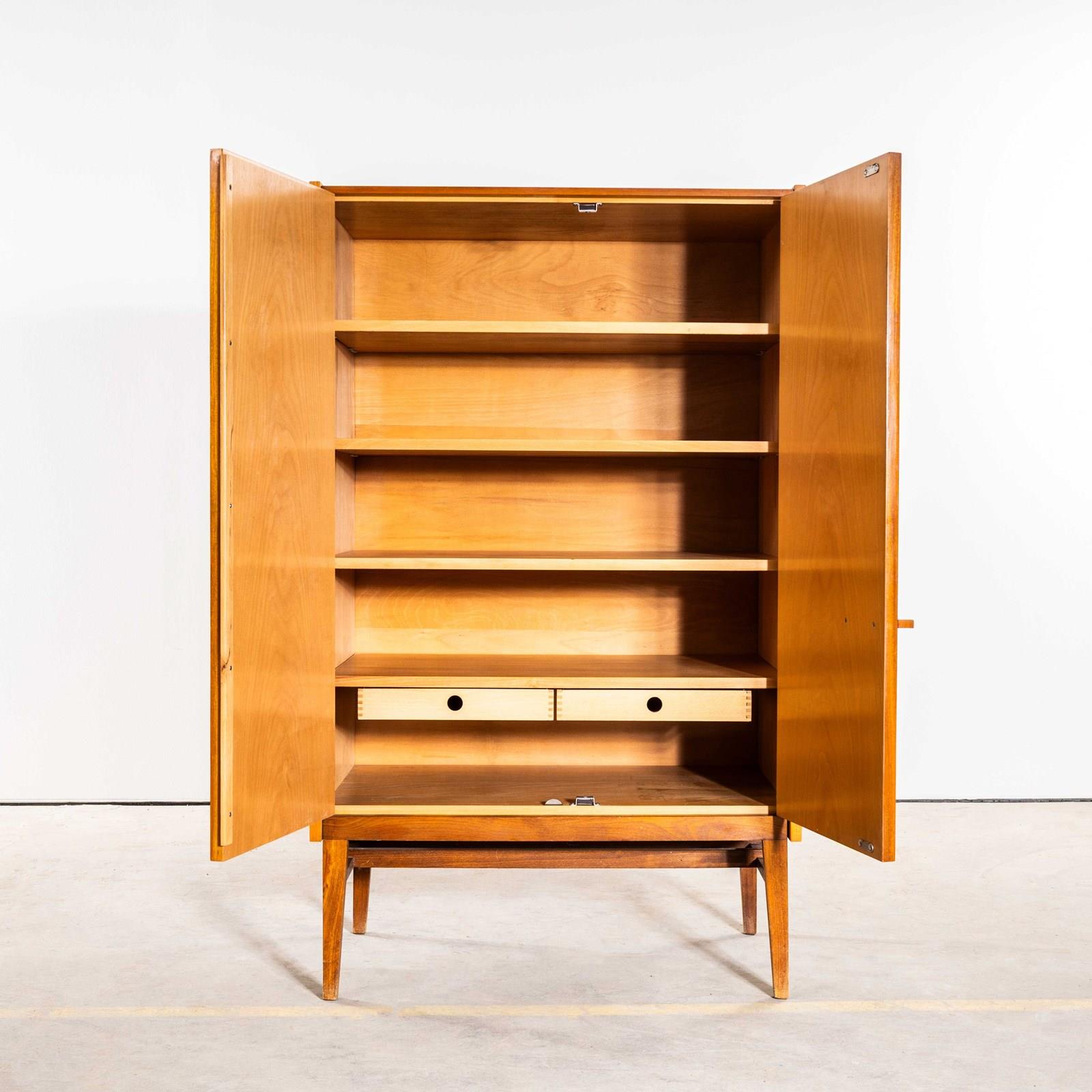 Beautiful simple and classic mid century cabinet sourced in the Czech Republic. Superb practical piece of mid century storage by the Czech maker Up Zavody and designed by Frantisek Mezulanik. Czech was a large producer of high quality mid century furniture following the surge of modernism originated by the Bauhaus school. The inside of the cabinet features five shelves and two small drawers. The whole cabinet is beautifully made with a dark Sapele and golden Birch mix. Our workshop has gently restored the cabinet and the cabinet is in exceptional original condition.