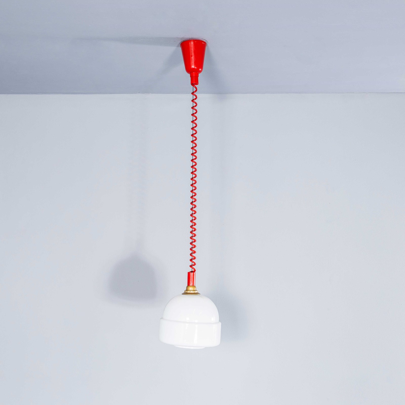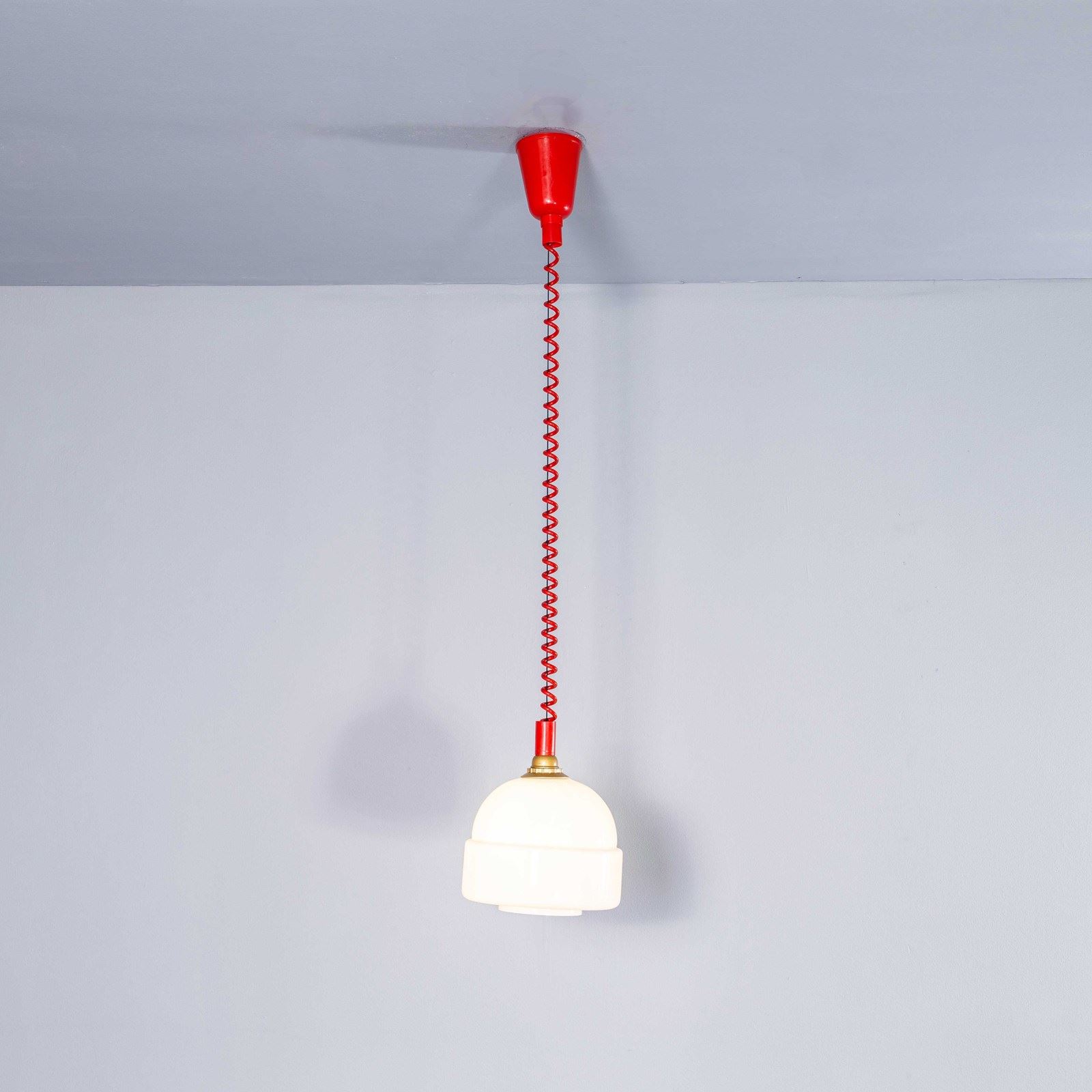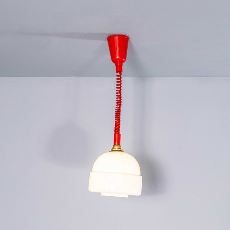 We recently cleared a lamp factory in the Czech Republic and we found these exceptional original new old stock bobble hat opaline lamps complete with the original height adjustable cable and mechanism. Simply pull the lamps down and the mechanism will lock them at the selected height, to raise the lamps pull them down to release the tension and they can be adjusted again. The gallery tops and ceiling cup and cable are as new. Each lamp has been cleaned and restored. Each lamp is individually tested and labelled. INCLUDED: Each lamp comes completely wired and ready to install as shown. The lamp is fitted with a standard E27 threaded lamp holder for which a wide range of modern and vintage style filament bulbs are widely available. We do not currently sell bulbs and recommend LED bulbs 6W maximum. We are specialists in refurbishment of vintage lighting, please contact us with any questions regarding purchase or installation. The lamp is currently wired and fitted for UK and EU compliance. Due to the original nature of the mechanism the lamp cannot be rewired for non EU markets. Listing is for one lamp.