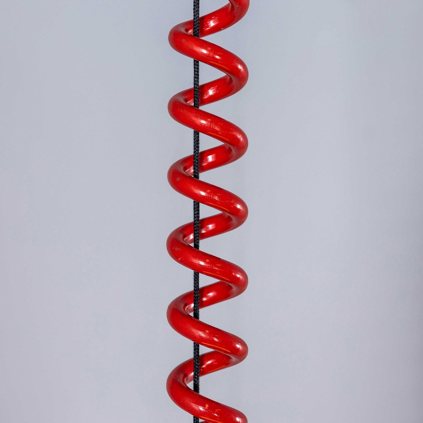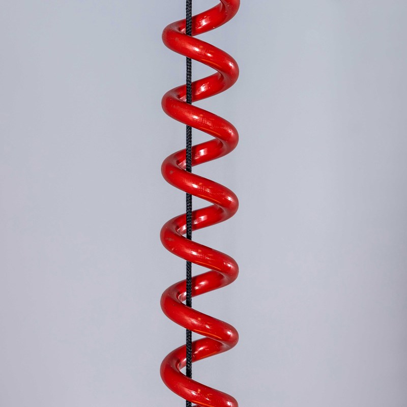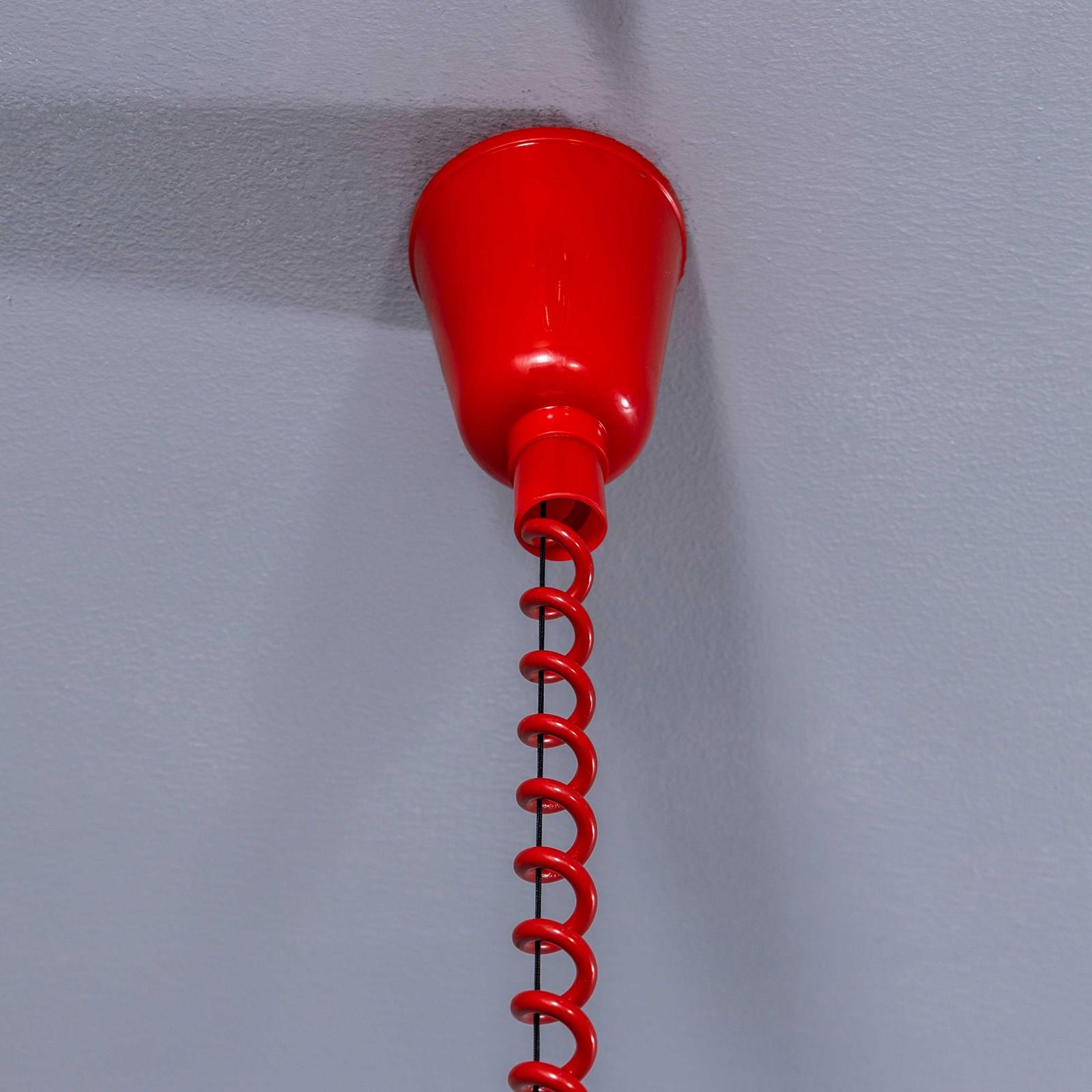 When the red wire is fully extended, including the glass and ceiling cup, it sits at 150cm from the ceiling.