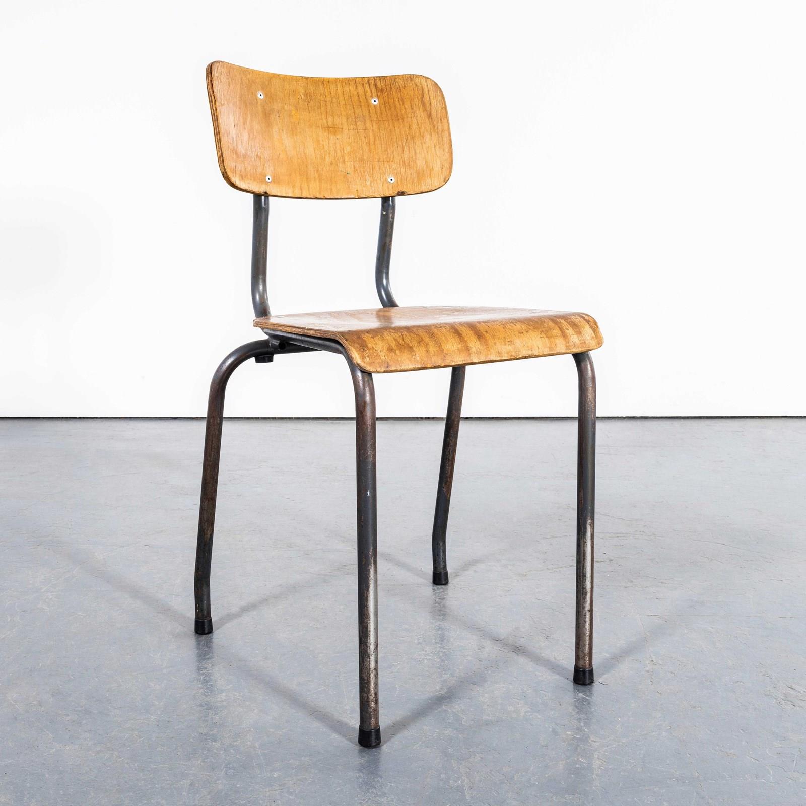 1960's Original Battle Grey French Stacking University Dining Chairs - Good Quantity Available.